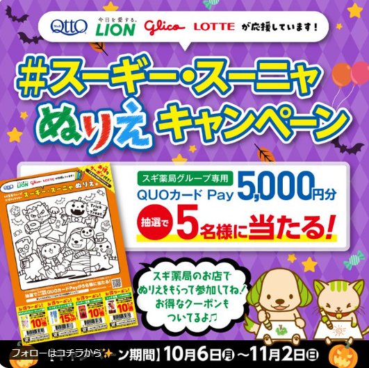 懸賞情報スギ薬局専用QUOカードPay5,000円分が当たるぬりえ投稿キャンペーン 懸賞名:X限定ぬりえキャンペーン当選賞品:スギ薬局専用QUOカードPay 5,000円分当選人数:5名様応募条件:作品を投稿して応募企業名:スギ薬局 この懸賞に応募する(応募期間終了)2025年11月02日今すぐ応募可能な懸賞はコチラから 見逃せない懸賞ユースキン ミッフィーポンプ / サンプル30名様 / 1万名様旅行券 5万円分 / デジタルカタログギフト / 白波復刻ボトル / PayPayポイント 500円分3名様 / 70名様 / 1,000名様 / 3,600名様カウネット オリジナル商品毎月50名様敏感肌用オールインワンジェル お試し無料モニター応募者全員USJ ハロウィーン初日貸切招待券 / スタジオ・パス4,750組12,000名様 / 1,000組2,000名様入園無料招待券、グルメなど賞品によって異なります 応募可能な懸賞関連する当選報告 オリジナルロゴ入りアイテムが当たるSUPER EIGHT歌唱キャンペーン残り8日毎月100名様にオリジナルQUOカードPayが当たる金曜限定Xキャンペーン毎週金曜日のみ開催信州スキー場のリフト券が当たる豪華ハガキキャンペーン残り23日広島産フルーツを使った特産品が当たる、JA広島のプレゼントキャンペーン毎月開催Number_i メッセージカード付きポーチや雪肌精スキンケアセットが当たるキャンペーン残り54日スイーツやグルメが当たる伊藤ハムの豪華ハガキ懸賞残り8日 Calbeeのハガキ懸賞で「フルグラ オリジナル相葉雅紀QUOカード」が当選しました☆アオキスーパー・紀文食品「アオキスーパーお買い物券1,000円分」が当選しました☆Yストア×協同乳業のハガキ懸賞で「農協シリーズ詰め合わせ」が当選しました!しんきん「グルメギフト 『旬彩カタログ しんきんのつなぐ力』絆コース」が当選しました!KAGOME「野菜生活100 国産プレミアムセット」が当選しました♪ウエルシア×バスクリンの懸賞で「天然甘エビ」が当選しました! 関連情報: X懸賞(Twitter懸賞)親子で応募できるコンテストオープン懸賞育児・子育て懸賞ネット懸賞現金・金券・ギフト券SNS懸賞コンテスト懸賞情報写真投稿・作品投稿 電子マネー・ポイント創作・アイデア絵・イラスト・ぬり絵QUOカードPayスギ薬局 HOME懸賞情報応募方法SNS懸賞X懸賞(Twitter懸賞)スギ薬局専用QUOカードPay5,000円分が当たるぬりえ投稿キャンペーン 2025年10月06日 更新:ものりんず@懸賞主婦【厳選】毎日応募 【全て】毎日応募 クリスマス懸賞 年末年始懸賞