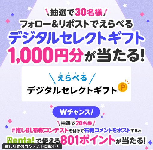 懸賞情報その場で当たるデジタルギフト1,000円分がその場で当たるXキャンペーン 懸賞名:フォロー&リポストキャンペーン当選賞品:デジタルギフト 1,000円分当選人数:30名様応募条件:X(Twitter)アカウントで毎日その場で当たる企業名:Renta! この懸賞に応募する(応募期間終了)2026年01月04日今すぐ応募可能な懸賞はコチラから 見逃せない懸賞デジタルギフト 500円相当 / 特製鍋焼うどん / 鍋島焼のプレミアムどんぶり10,000名様 / 2,000名様 / 300名様えらべるPay or QUOカード 最大1,000円分合計10,000名様【無料体験可能】子ども向け「習い事・プログラミング教室」スター・ウォーズグッズ / Coke ONドリンクチケット8,000名様 / 10,000名様バルミューダ リベイカー / Yogibo Mega Moon Pillow / えらべるPay1,000円分300名様 / 500名様 / 4,000名様宝塚歌劇 花組 楽天グループ貸切公演チケット1,000組2,000名様 応募可能な懸賞関連する当選報告 毎月開催!文具や事務用品などが当たるナカバヤシのキャンペーン定期開催ディズニーパークチケットやパークグッズが当たる豪華雑誌限定キャンペーン♪毎月開催全プレ!ミッフィーバッグが必ずもらえる、エースコックのプレゼントキャンペーン残り19日毎週開催!図書カードが当たるアンケートキャンペーン!定期開催毎月開催!サンジルシ大人気セットが当たるLINEキャンペーン☆毎月抽選ドラえもん オリジナル親子エプロンセットが当たるレシートキャンペーン残り19日 大正製薬「リポビタンD 限定デザインボトル10本セット」が当選しました♪ヤマナカ×日清のハガキ懸賞で「カップヌードルローリングストックセット」が当選しました☆PLANT×キリンのハガキ懸賞で「伊勢赤どり味噌漬け」が当選しました!イトーヨーカドー×グリコのハガキ懸賞で「旅館自慢の鍋と日帰り入浴の旅」が当選しました☆Coca-Cola『GEORGIA ヨーロピアン 香るブラック』ホット体験キットで専門店のおいしさを試そう!フィール&寿がきやのハガキ懸賞で「プレミアムSugakiyaラーメン」が当選しました☆ 関連情報: X懸賞(Twitter懸賞)オープン懸賞毎日応募ネット懸賞その場で当たる現金・金券・ギフト券SNS懸賞懸賞情報 電子マネー・ポイントギフトコード|デジタルギフト HOME懸賞情報応募方法SNS懸賞X懸賞(Twitter懸賞)デジタルギフト1,000円分がその場で当たるXキャンペーン 2025年12月23日 更新:ものりんず@懸賞主婦【厳選】毎日応募 【全て】毎日応募 年末年始懸賞