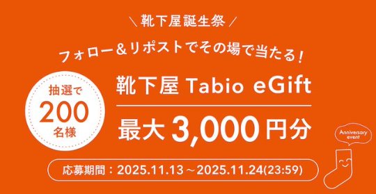 懸賞情報その場で当たる靴下屋TabioのeGIFT500円分がその場で当たるキャンペーン 懸賞名:フォロー&リポストでその場で当たる!当選賞品:靴下屋Tabio eGIFT 最大3,000円分当選人数:200名様応募条件:X(Twitter)アカウントでその場で当たる企業名:Tabio 靴下屋 この懸賞に応募する2025年11月24日(残り10日) 見逃せない懸賞図書カードネットギフト 最大10万円分 / 星野リゾート宿泊ギフト券 5万円分合計1,005名様 / 10名様ザ・ベゼルズ無料引換券不明無料で試せる「ベビー用スキンケア」のお得情報♪味の素商品やオリジナルグッズなど賞品によって異なりますレコルト 自動調理ポット / レコルト ポットデュオ キャレ / 東ハトお菓子の詰め合わせ100名様 / 100名様 / 800名様電動自転車 / ベビーラック / iRobot ルンバ ほか合計1,098名様 応募可能な懸賞関連する当選報告 QUOカードや競輪オリジナルグッズが当たるLINEキャンペーン残り10日【沖縄】ANAインターコンチネンタル石垣リゾート 宿泊券プレゼント懸賞残り41日500名様に学研「最強王図鑑」の豪華グッズが当たるクローズドキャンペーン残り51日最大3万円分のギフトペイが当たるサントリーの豪華キャンペーン残り52日1万円分のソニーポイントが当たる豪華プレゼントキャンペーン残り17日【ツルハグループ×ZONe】ZONeオリジナルグッズや商品券が当たるキャンペーン残り16日 Suntory「くつろぎ族入団キャンペーン」ヤマナカ&ヤマダイのハガキ懸賞で「凄麺12種類セット」が当選しました♪第2広報室「PPスキンバリアゲル」の無料モニターに当選しました!牛角のTwitter懸賞で「食事券 3,000円分」が当選しました♪ドン・キホーテ×ロート製薬の懸賞で「スキンケアセット」が当選しました!コノミヤのクローズド懸賞で「酒類詰め合わせ」が当選しました! 関連情報: X懸賞(Twitter懸賞)オープン懸賞ネット懸賞その場で当たる現金・金券・ギフト券SNS懸賞懸賞情報 ギフトコード|デジタルギフト HOME懸賞情報応募方法SNS懸賞X懸賞(Twitter懸賞)靴下屋TabioのeGIFT500円分がその場で当たるキャンペーン 2025年11月14日 更新:ものりんず@懸賞主婦【厳選】毎日応募 【全て】毎日応募 クリスマス懸賞 年末年始懸賞