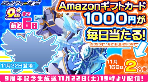 懸賞情報Amazonギフトカード1,000円分が毎日当たるXキャンペーン 懸賞名:カウントダウンキャンペーン当選賞品:Amazonギフトカード 1,000円分当選人数:合計28名様応募条件:X(Twitter)アカウントで毎日応募企業名:エイリアンのたまご この懸賞に応募する(応募期間終了)2025年11月21日今すぐ応募可能な懸賞はコチラから 見逃せない懸賞JTBトラベルギフト 5万円分 / 直産ギフトカード 1万円分 / カタログギフト / えらべるPay 500円分10名様 / 50名様 / 200名様 / 1,000名様QUOカード 1,000円分 / お楽しみ製品400名様 / 600名様マタニティ・ベビー用品・コスメなどのサンプルセット賞品によって異なるJTB旅行券 2万円分 / オリジナルポップコーントング / TOHOシネマズ映画鑑賞券30名様 / 1,000名様 / 2,000名様JTBトラベルギフト 10万円分 / ビスケット詰め合わせ28名様 / 2,280名様コズレオリジナルデザイン「出生届」メルマガ登録して必ずもらえる 応募可能な懸賞関連する当選報告 Yogibo MaxやDyson空気清浄機も当たるキリンビールの豪華懸賞2026年03月17日(全2回開催)全プレ!総額1,000万円相当のPayPayポイントが当たるLINEキャンペーン残り218日1,000名様にデジタルポイントが当たるクローズドキャンペーン残り22日毎月開催☆サンガリア商品が当たるキャンペーン!毎月開催新発売した「エイトフォーパテ」がサンプルでお試しできるキャンペーン残り6日NOBROCK TVのオリジナルグッズが当たるエースコックのコラボキャンペーン残り38日 ヤマナカ&ヤマダイのハガキ懸賞で「凄麺12種類セット」が当選しました♪ヤマナカ×不二家のハガキ懸賞で「アンパンマンこどもミュージアム入場券」が当選しました♪エスビー食品のTwitter懸賞で「お皿+シーズニングセット」が当選しました☆東洋水産のハガキ懸賞で「どこでも洗濯セット」が当選しました!資生堂「TSUBAKI 無料サンプル」が当選しました!ヤクルトのハガキ懸賞で「オリジナルピクニックセット」が当選しました☆ 関連情報: X懸賞(Twitter懸賞)オープン懸賞毎日応募ネット懸賞現金・金券・ギフト券SNS懸賞懸賞情報 Amazonギフト券商品券・ギフト券・金券 HOME懸賞情報応募方法SNS懸賞X懸賞(Twitter懸賞)Amazonギフトカード1,000円分が毎日当たるXキャンペーン 2025年11月17日 更新:ものりんず@懸賞主婦【厳選】毎日応募 【全て】毎日応募 クリスマス懸賞 年末年始懸賞