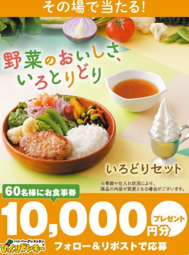 懸賞情報その場で当たるびっくりドンキーの食事券10,000円分が当たる豪華Xキャンペーン 懸賞名:ごはん、すすむ、すすむ。TVCM キャンペーン当選賞品:びっくりドンキー食事券 10,000円分当選人数:60名様応募条件:X(Twitter)アカウントで毎日その場で当たる企業名:びっくりドンキー この懸賞に応募する2026年03月08日(残り12時間) 見逃せない懸賞えらべるPay 500円分 or ミニチュアチャーム1,000名様トップスケーター トークイベント招待 / オリジナルフォトブック / QUOカードPay 500円分500名様 / 500名様 / 100名様【無料体験可能】子ども向け「習い事・プログラミング教室」PayPayポイント 2,000円分1,000名様デジタルギフト 500円分毎月2,000名様Panasonic 電気圧力鍋 / Nintendo Switch / LOGOS ポップフルシェルター 他1名様 / 1名様 / 1名様 他 応募可能な懸賞関連する当選報告 チャイルドシートやApple Watch SE 3 GPSモデルなどの豪華賞品が当たるアンケートキャンペーン残り101日図書カードネットギフトが当たるアンケートキャンペーン!毎月抽選FIFAワールドカップ2026 日本戦チケット または えらべるPayが当たる豪華懸賞残り8日ピジョンのベビーカーが当たるアンバサダー募集キャンペーン残り10日合計100名様に成績がのびーる豪華賞品が当たるKADOKAWAの豪華キャンペーン残り35日やかんの濃麦茶 3ケースが当たる初恋ソングリクエストキャンペーン締切日不明 ヤマサ醤油「第30回 YAMASA クッキング BINGO」明治のキャンペーンで「和牛定期便」に当選しました♪ダイショーのハガキ懸賞で「オリジナルもつ鍋セット」が当選しました☆UCC「『2015 COFFEE DREAM キャンペーン』バロー・バローホームセンター・食鮮館タイヨー」東ハトのキャンペーンで「お菓子の詰め合わせ」が当選しました☆月刊Cheek「プレゼント企画~mandom Baby Veil ヘアフレグランス~」 関連情報: X懸賞(Twitter懸賞)オープン懸賞毎日応募その場で当たるネット懸賞豪華・高額懸賞現金・金券・ギフト券SNS懸賞懸賞情報 高額賞品・高級品食事券・グルメ券 HOME懸賞情報応募方法SNS懸賞X懸賞(Twitter懸賞)びっくりドンキーの食事券10,000円分が当たる豪華Xキャンペーン 2026年03月04日 更新:ものりんず@懸賞主婦【厳選】毎日応募 【全て】毎日応募