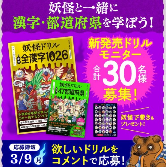 懸賞情報商品モニター【小学1・2年生向け】日本一こわい学習ドリルがお試しできる商品モニター懸賞 キャンペーン名:【小学1・2年生向け】日本一こわい学習ドリル「妖怪ドリル」発売!当選賞品:「妖怪ドリル」商品モニター当選人数:30名様応募条件:X(Twitter) または Instagramアカウントで応募企業名:文響社コメント:※書籍の対象年齢小学生以上のお子様がいらっしゃる方 など条件あり この懸賞に応募する(応募期間終了)2026年03月09日今すぐ応募可能な懸賞はコチラから 見逃せない懸賞翠ジンソーダ コンビニ引換クーポン30万名様テンスター カラーシャンプー無料サンプル対象者全員【無料体験可能】子ども向け「習い事・プログラミング教室」QUOカードPay 最大1万円分合計10,000名様デジタルギフト 500円相当 / 特製鍋焼うどん / 鍋島焼のプレミアムどんぶり10,000名様 / 2,000名様 / 300名様はじめてのベビースタイ応募者全員 応募可能な懸賞関連する当選報告 東京中央区内の企業商品が当たる「中央区ブランド」懸賞♪残り15日2,000名様にえらべるPayがその場で当たるXキャンペーン(本日最終日!!)全プレ!えらべるPayが必ずもらえるレシートキャンペーン終了日未定【全国】7,000名様にカゴメトマトの苗が当たる大量当選レシート懸賞2026年04月26日(全2回開催)ニッスイ春の新商品セットが20名様に当たるXキャンペーン残り1日カルテHDのスキンケアがお試しできるガチモニター募集キャンペーン残り1日 FEEL×プリマハム×Suntory「ザ・プレミアム・モルツ マスターズドリーム12本セット」が当選しました♪コーナン×P&Gのハガキ懸賞で「P&G商品 3,000円相当」が当選しました♪Daihatsu「WAKEとドデカク出かけようキャンペーンについてのアンケート」ヤマナカ×コーミのハガキ懸賞で「スイーツパラダイス バイキング券」が当選しました!東海漬物のハガキ懸賞で「日本3大和牛のカレーセット」が当選しました♪Nestle「期間限定『ル パティシエ タカギの高木康政氏の全面監修 キットカット サブリム ビターを抽選で25,000名様に無料プレゼント』キャンペーン」 関連情報: X懸賞(Twitter懸賞)育児・子育て懸賞オープン懸賞ネット懸賞Instagram懸賞SNS懸賞商品モニターベビー・キッズ・おもちゃ懸賞情報 限定条件あり懸賞育児・子育て勉強・学習 HOME懸賞情報応募方法SNS懸賞X懸賞(Twitter懸賞)【小学1・2年生向け】日本一こわい学習ドリルがお試しできる商品モニター懸賞 2026年02月24日 更新:ものりんず@懸賞主婦【厳選】毎日応募 【全て】毎日応募