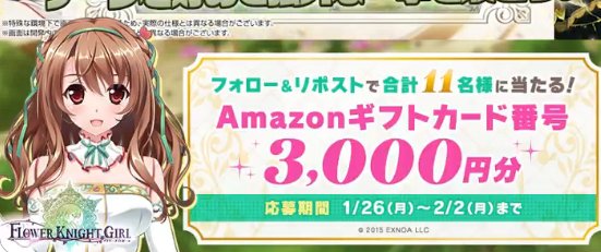 懸賞情報その場で当たる3,000円分のAmazonギフトカードがその場で当たるキャンペーン 懸賞名:プレゼントキャンペーン当選賞品:Amazonギフトカード 3,000円分当選人数:11名様応募条件:X(Twitter)アカウントでその場で当たる企業名:【DMM GAMES】フラワーナイトガール ナズナ この懸賞に応募する(応募期間終了)2026年02月02日今すぐ応募可能な懸賞はコチラから 見逃せない懸賞ポケモン・ガリガリ君 アウトドアグッズ1,000名様カレ・ド・ショコラ <スペリオリテ>毎月900名様サイベックス ミオス ベビーカー / 洗えるベビー布団セット / パナソニック 電動自転車 他1名様 / 3名様 / 1名様 他Amazonギフトコード 500円分1,000名様アラジン グラファイトトースター / レコルト 卓上IHクッキンググリドル 他50名様 / 50名様 他マタニティ・ベビー用品・コスメなどのサンプルセット賞品によって異なる 応募可能な懸賞関連する当選報告 アウトドアが楽しめるフォルクスワーゲングッズが当たるキャンペーン残り20日毎月開催!ビーンスターク商品がお試しできるプレゼントキャンペーン残り1日ポータブルピザ窯やYogibo miniなども当たるオリオンビールのクローズドキャンペーン(本日最終日!!)毎月応募もアリ☆THERMOS製品が当たる会員限定キャンペーン!随時開催ギフトカードや有名店の食事券が当たる、地養鳥協会のクローズドキャンペーン残り32日毎月1,000名様に最大10,000円分のアマギフが当たる豪華キャンペーン2026年03月20日(毎月開催) ブルボンのTwitter懸賞で「濃厚チョコブラウニーピスタチオ&ピスタチオラッシュ」が当選しました♪マックスバリュ東海×おやつカンパニーのハガキ懸賞で「お菓子詰め合わせ」が当選しました☆パイロットコーポレーションのTwitter懸賞で「名入れボールペン」が当選しました!オークワのハガキ懸賞で「JTBえらべるギフト」が当選しました♪P&Gのハガキ懸賞で「P&G商品ギフトセット」が当選しました♪マイレピの懸賞で「P&G製品の詰め合わせ」が当選しました☆ 関連情報: X懸賞(Twitter懸賞)オープン懸賞ネット懸賞その場で当たる現金・金券・ギフト券SNS懸賞懸賞情報 Amazonギフト券商品券・ギフト券・金券DMM HOME懸賞情報応募方法SNS懸賞X懸賞(Twitter懸賞)3,000円分のAmazonギフトカードがその場で当たるキャンペーン 2026年01月27日 更新:ものりんず@懸賞主婦【厳選】毎日応募 【全て】毎日応募 年末年始懸賞