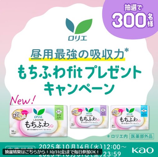 懸賞情報その場で当たるロリエの生理用品セットがその場で300名様に当たるXキャンペーン 懸賞名:ロリエ プレゼントキャンペーン当選賞品:ロリエ 生理用品セット当選人数:300名様応募条件:X(Twitter)アカウントで毎日その場で当たる企業名:花王 この懸賞に応募する2025年10月31日(残り17日) 見逃せない懸賞キッザニア甲子園 ソニースペシャルナイト招待券最大1,200名様えらべるPay 300ポイント3,000名様combi チャイルドシート / Amazonギフトカード 3万円分 / Apple Watch SE 他1名様 / 2名様 / 2名様 他二宮和也QUOカード1,000名様どん兵衛グッズ合計1,000名様気になっていたあの商品をお得に試せるサイト「サンプル百貨店」 応募可能な懸賞関連する当選報告 マルハニチロ新商品やモニター商品が当たるキャンペーン♪定期開催らんま1/2グッズや味ぽんなどが当たるミツカンのキャンペーン残り17日Amazonギフトカード100万円分が当たる高額X懸賞残り19日3,000円分のQUOカードPayが当たるクイズキャンペーン!毎週金曜日開催現金や最大10万ポイントも当たる豪華大量当選キャンペーン☆定期開催毎週開催!ベルメゾンのおすすめ商品が当たる会員限定キャンペーン!2025年10月31日(賞品によって異なります) @cosme「三菱UFJニコス ギフトカード」が当選しました♪FEEL×プリマハム×Suntory「ザ・プレミアム・モルツ マスターズドリーム12本セット」が当選しました♪Baby Kumonコミュニティのキャンペーンで「くろくまくんセット」が当選しました!クラシエのキャンペーンで「知育菓子セット」が当選しました♪象印のキャンペーンで「自由軒カレー」が当選しました☆アピタ・ピアゴ×サントリーのハガキ懸賞で「発酵フードメーカー」が当選しました! 関連情報: X懸賞(Twitter懸賞)オープン懸賞毎日応募その場で当たるネット懸賞SNS懸賞美容・健康・コスメ懸賞情報 詰め合わせ・セット生理・ケア用品花王 HOME懸賞情報応募方法SNS懸賞X懸賞(Twitter懸賞)ロリエの生理用品セットがその場で300名様に当たるXキャンペーン 2025年10月14日 更新:ものりんず@懸賞主婦【厳選】毎日応募 【全て】毎日応募