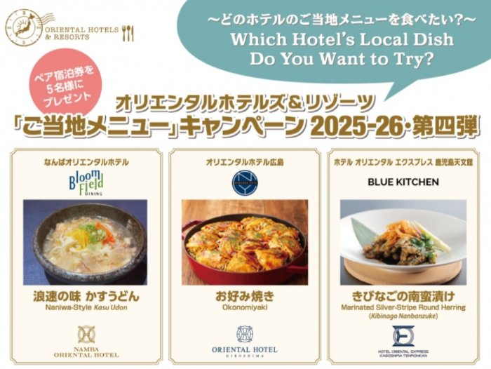 懸賞情報1位に選ばれたホテルの宿泊券が当たるオリエンタルホテルズ&リゾーツの投票キャンペーン 懸賞名:「ご当地メニュー」キャンペーン2025-202当選賞品:1位に選ばれたホテルの宿泊券当選人数:5名様応募条件:アンケートに答えて応募企業名:オリエンタルホテルズ&リゾーツ この懸賞に応募する2026年01月31日(残り19日) 見逃せない懸賞勝利の女神:NIKKE × ZONe ENERGYコラボグッズ1,200名様無添加パテセット1,500名様バーバパパグッズ / レコルト 自動調理ポット / ベビーキャリア 他対象者全員 / 2名様 / 2名様 他純金 海老天 / ホワイトホース卓上ホットショーケース / あっとギフト 500円分1名様 / 5名様 / 2,020名様JCBギフトカード or QUOカードPay 最大10,000円分合計1,000名様宝塚歌劇 花組 楽天グループ貸切公演チケット1,000組2,000名様 応募可能な懸賞関連する当選報告 サンスターのオーラルケア製品がその場で当たるポイントキャンペーン!締切日不明Amazonギフトカード1,000円分がその場で当たるSkyのX懸賞残り19日『映画すみっコぐらし空の王国とふたりのコ』限定グッズがその場で当たるキャンペーン残り19日【マツキヨココカラ】豪華家電やグルメなどが当たるクローズドキャンペーンWEB:2026年01月15日 / ハガキ:2026年01月21日毎月開催!サンフラワーズオリジナルグッズが当たるキャンペーン毎月開催毎月1,000名様にお試しスティックが当たるママ向けキャンペーン2026年02月28日(毎月末日) 東洋水産のハガキ懸賞で「カタログギフト」が当選しました♪ヨシヅヤ・ロッテの懸賞で「劇場版 ポケットモンスター 特別前売券」が当選しました!西友×メーカー各社のハガキ懸賞で「3社商品詰め合わせセット」が当選しました!ダンロップのTwitter懸賞で「ドラえもん のび太の新恐竜ムビチケ」が当選しました!全日本菓子協会の懸賞で「お菓子の詰め合わせセット」が当選しました!スギ薬局のハガキ懸賞で「山田養蜂場 はちみつオリジナルギフトセット」が当選しました! 関連情報: オープン懸賞旅行・宿泊ネット懸賞豪華・高額懸賞懸賞情報 ホテル・旅館高額賞品・高級品特別な体験|夢の実現宿泊券・旅行券 HOME懸賞情報応募方法ネット懸賞1位に選ばれたホテルの宿泊券が当たるオリエンタルホテルズ&リゾーツの投票キャンペーン 2026年01月07日 更新:ものりんず@懸賞主婦【厳選】毎日応募 【全て】毎日応募 年末年始懸賞