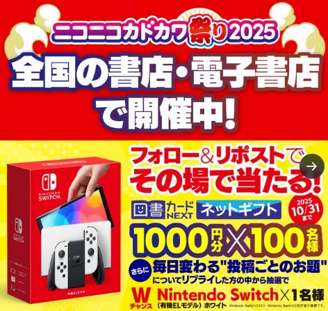 懸賞情報その場で当たる図書カードネットギフトがその場で当たるKADOKAWAのXキャンペーン 懸賞名:フォロー&リポストキャンペーン当選賞品:図書カードネットギフト 1,000円分当選人数:100名様応募条件:X(Twitter)アカウントで毎日その場で当たる企業名:KADOKAWA この懸賞に応募する2025年10月31日(残り21日) 見逃せない懸賞Ado DOME TOUR 2025ライブチケット / Adoコラボスピーカー / Coke ONドリンクチケット200名様 / 1,000名様 / 10万名様フェニックス・シーガイア・オーシャン・タワー ペア宿泊券+KIRISHIMA No.8 他8名様 他コズレオリジナルデザイン「出生届」メルマガ登録して必ずもらえるフォローアップミルク「つよいこ」お試しスティック毎月1,000名様国産ブランド牛肉 / 北海道産米合計1,000名様 / 1,000名様気になっていたあの商品をお得に試せるサイト「サンプル百貨店」 応募可能な懸賞関連する当選報告 【バロー×プリマハム】東京ディズニーランド ザ・ダイヤモンドホースシュー 貸切ご招待残り54日いちご栽培セットが当たるモニター募集キャンペーン残り9日賞金30万円や文具セットなども当たるらくがき&アートコンテストキャンペーン2025年11月30日(全2回開催)図書カードNEXT散漫円や図鑑セットなども当たる自由研究コンクール残り21日その場で最大1万円分のAmazonギフトカード当たるアップガレージのクローズドキャンペーン残り172日中村佑介先生直筆サイン入りの書籍も当たるぬりえコンテスト残り4日 マックスバリュ中部×Nipponhamのハガキ懸賞で「スポーツタオルセット」が当選しました♪オークワ&ライオンのハガキ懸賞で「ライオン商品詰め合わせセット」が当選しました♪CLUB Panasonic「パナソニックのあかりキャンペーン」シックのTwitter懸賞で「スキンケアセット+QUOカード」が当選しました♪UCCのキャンペーンで「オリジナルコーヒーギフト」が当選しました☆KIRIN「午後の紅茶 おいしい無糖」が当選しました! 関連情報: X懸賞(Twitter懸賞)オープン懸賞毎日応募ネット懸賞その場で当たる現金・金券・ギフト券SNS懸賞懸賞情報 ギフトコード|デジタルギフトKADOKAWA HOME懸賞情報応募方法SNS懸賞X懸賞(Twitter懸賞)図書カードネットギフトがその場で当たるKADOKAWAのXキャンペーン 2025年09月26日 更新:ものりんず@懸賞主婦【厳選】毎日応募 【全て】毎日応募
