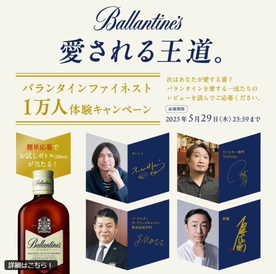 懸賞情報無料サンプルサントリーのバランタインファイネストお試しボトルが当たる大量当選懸賞 懸賞名:愛される王道。バランタインファイネストプレゼントキャンペーン当選賞品:バランタインファイネストお試しボトル当選人数:1万名様応募条件:アンケートに答えて応募企業名:サントリー この懸賞に応募する(応募期間終了)2025年05月29日今すぐ応募可能な懸賞はコチラから 見逃せない懸賞ニットバッグ / ステンレスマグ&ドリップコーヒー10,000名様 / 10,000名様グルメカタログギフト23,300名様オリジナル名入れ絵本ダウンロードデータ対象者全員えらべるPay 1,000ポイント1,000名様QUOカードPay 1,000円分 / 調理家電1,000名様 / 300名様はじめてのベビースタイ応募者全員 応募可能な懸賞関連する当選報告 毎月開催♪口腔ケアグッズが当たるSNSキャンペーン!毎月開催Number_i メッセージカード付きポーチや雪肌精スキンケアセットが当たるキャンペーン残り32日ハウス製品詰め合わせセットが当たるXキャンペーン残り10日毎月抽選!いくら醤油漬けが当たるLINE友だち登録キャンペーン!常時募集中全プレ!えらべるPayが必ずもらえるレシートキャンペーン終了日未定スタバのステンレスタンブラーが当たるレシートキャンペーン残り8日 SAPPORO「麦とホップ THE GOLD MISSIONキャンペーン」全日本菓子協会の懸賞で「お菓子の詰め合わせセット」が当選しました!ASTIGU「アスティーグ コンプリートBOX(プレーンストッキング11足セット)」が当選しました☆フィール・はごろもフーズのハガキ懸賞で「ナガシマジャンボ海水プール入場券」が当選しました☆東洋アルミエコープロダクツ「おたのしみマークキャンペーン」でQUOカードが当選♪フィール・サッポログループ・宝幸・日本ルナのハガキ懸賞で「商品詰め合わせ」が当選しました! 関連情報: オープン懸賞LINE懸賞ネット懸賞無料サンプル・試供品大量当選SNS懸賞食品・飲料懸賞情報 ドリンク・飲料お酒サントリー HOME懸賞情報応募方法SNS懸賞LINE懸賞サントリーのバランタインファイネストお試しボトルが当たる大量当選懸賞 2025年05月02日 更新:ものりんず@懸賞主婦【厳選】毎日応募 【全て】毎日応募 クリスマス懸賞 年末年始懸賞
