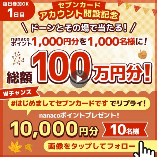 懸賞情報その場で当たるnanacoポイント1,000円分が1,000名様にその場で当たるXキャンペーン 懸賞名:アカウント開設記念キャンペーン当選賞品:nanacoポイント 1,000円分当選人数:1,000名様応募条件:X(Twitter)アカウントで毎日その場で当たる企業名:セブンカード この懸賞に応募する(応募期間終了)2025年10月05日今すぐ応募可能な懸賞はコチラから 見逃せない懸賞どん兵衛グッズ合計1,000名様宝塚歌劇ペア鑑賞券 / カタログギフト / QUOカードPay 500円分100名様 / 100名様 / 800名様コスメ、美容グッズモニター・サンプルなど賞品によって異なるえらべるPay 最大1,000pt50,000名様イトメン製品&オリジナルレシピブック各回500名様無料で試せる「ベビー用スキンケア」のお得情報♪ 応募可能な懸賞関連する当選報告 アサヒのドリンクセットなどが当たるAsahi Parkキャンペーン☆締切日不明毎月抽選!選べるギフトが当たる、三井住友海上あいおい生命のアンケート懸賞毎月末日毎月開催!宿泊券や育児グッズなどが当たるミキハウスのLINEキャンペーン毎月開催オリジナルデザインQUOカードがその場で当たるクローズドキャンペーンキャンペーン告知パッケージがなくなり次第終了毎月15名様に1万円分の電子マネーが当たるSky株式会社の高額懸賞☆毎月開催オタクに関するネタを投稿する「第21回 あなたが選ぶオタク川柳大賞」残り61日 米国食肉輸出連合会「ビーフといえば、アメリカン。夏の宝探しキャンペーン」PLANT×メーカー各社のキャンペーンで「ポテトチップス1ケース」が当選しました!小野万のハガキ懸賞で「小野万製品詰め合わせセット」が当選しました☆キユーピー「マヨテラスキユーピー人形」が当選しました☆ポチカム「クオリティファースト シートマスク詰め合わせ」が当選しました!ホクトのキャンペーンで「DOCTORAIR 3Dエアストレッチマット」が当選しました! 関連情報: X懸賞(Twitter懸賞)オープン懸賞毎日応募ネット懸賞その場で当たる現金・金券・ギフト券大量当選SNS懸賞懸賞情報 電子マネー・ポイント HOME懸賞情報応募方法SNS懸賞X懸賞(Twitter懸賞)nanacoポイント1,000円分が1,000名様にその場で当たるXキャンペーン 2025年09月26日 更新:ものりんず@懸賞主婦【厳選】毎日応募 【全て】毎日応募 クリスマス懸賞 年末年始懸賞