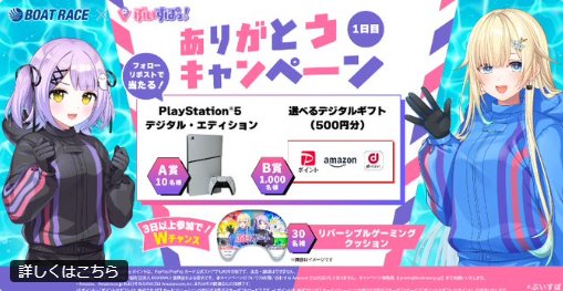 懸賞情報PlayStation5やデジタルギフト500円分も当たる豪華Xキャンペーン 懸賞名:藍沢エマ&紫宮るなとのコラボキャンペーン当選賞品&当選人数:PlayStation 5(10名様)デジタルギフト 500円分(1,000名様)応募条件:X(Twitter)アカウントで毎日応募企業名:ボートレース この懸賞に応募する2025年10月13日(残り6日) 見逃せない懸賞レストランGranna食事券 / PayPayポイント 10,000円分 / 中村屋お菓子詰め合わせ 他各回10組20名様 / 各回10名様 / 各回15名様 他「みらいを奏でる音楽会」招待券会場によって異なりますコスメ・宿泊体験・体験イベントなどの無料モニターモニター内容によって異なりますサントリー セサミンEX 商品モニター1万名様えらべるPay 最大79,000円分3,144名様入園無料招待券、グルメなど賞品によって異なります 応募可能な懸賞関連する当選報告 最大3,333円分のQUOカードPayがその場で当たるXキャンペーン締切日不明USJの1デイ・スタジオ・パスなどが当たる豪華会員限定キャンペーン残り16日毎月開催♪JA新いわての特産品が当たる脳トレクイズキャンペーン!残り3日得得で使えるデジタル食事券500円分がその場で当たるキャンペーン残り12日毎月開催!Amazonギフト券が当たるX大喜利投稿キャンペーン残り1日ヘナカラートリートメントがお試しできる得なキャンペーン!締切日不明 ごちぽんで「ふりかけとろろセット」が当選しました♪オークワ×クラシエのハガキ懸賞で「北海道クリームブリュレ」が当選しました!集英社「BAILA ○○が嫌な口ぐせ集アンケート」森永のTwitter懸賞で「ハイチュウ詰め合わせ」が当選しました♪クスリのアオキ×ダリヤのクローズド懸賞で「国産和牛カタログギフト」が当選しました!スギ薬局×エスエス製薬「ブラウン マルチクイック」が当選しました☆ 関連情報: X懸賞(Twitter懸賞)オープン懸賞毎日応募ネット懸賞家電・デジタル機器豪華・高額懸賞現金・金券・ギフト券大量当選SNS懸賞ベビー・キッズ・おもちゃ懸賞情報 ボートレース|競艇高額賞品・高級品ギフトコード|デジタルギフトゲーム機・ゲームソフトデジタル家電・AV機器PlayStation5 HOME懸賞情報応募方法SNS懸賞X懸賞(Twitter懸賞)PlayStation5やデジタルギフト500円分も当たる豪華Xキャンペーン 2025年10月07日 更新:ものりんず@懸賞主婦【厳選】毎日応募 【全て】毎日応募