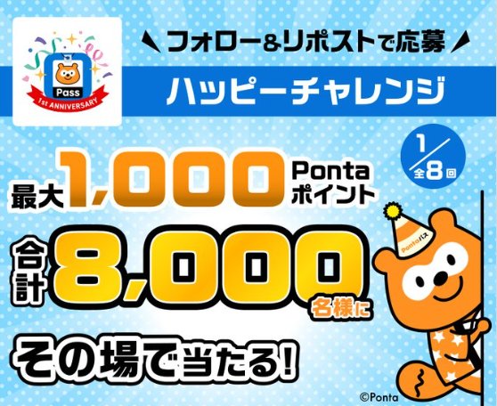 懸賞情報その場で当たる合計8,000名様に最大1,000Pontaポイントがその場で当たるXキャンペーン 懸賞名:ハッピーチャレンジ !当選賞品:最大1,000Pontaポイント当選人数:合計8,000名様応募条件:X(Twitter)アカウントでその場で当たる企業名:Pontaパス この懸賞に応募する2025年11月30日(全8回開催) 見逃せない懸賞ルシード スキンケア サンプル1,000名様キリングッドエール コンビニ無料引き換えクーポン530,000名様妊婦さん必見!無料で試せる「紙おむつ・粉ミルク」のお得情報 BEST10♪QUOカードPay 1万円分1,0000名様テンスター カラーシャンプー無料サンプル対象者全員combi チャイルドシート / Amazonギフトカード 3万円分 / Apple Watch SE 他1名様 / 2名様 / 2名様 他 応募可能な懸賞関連する当選報告 明治の新商品が100名様に当たる会員限定キャンペーン残り8日和光堂のミルクがお試しできるモニター募集キャンペーン毎週抽選Wチャンスもアリ!お料理グッズが当たる丸美屋の大量当選ハガキ懸賞2025年11月09日(毎週抽選)新色カラートリートメントが当たるレシートキャンペーン毎月末日(応募数が10通を下回った場合はキャンペーン終了)トラベルギフトや歌舞伎座チケットなどが当たる花王のクローズドキャンペーン残り7日10万円分の人気コスメセットが当たるアプリ連携キャンペーン残り13日 明治のキャンペーンで「和牛定期便」に当選しました♪イオン×キリンのハガキ懸賞で「午後の紅茶&カレー3種」が当選しました!街コンジャパン「Facebook・Twitterキャンペーン」アソビフルのキャンペーンで「ネスカフェ ドルチェ グストセット」が当選しました♪ドン・キホーテ×サッポロのLINE懸賞で「チューハイセット」が当選しました!オークワ×P&Gのハガキ懸賞で「P&Gスッキリ清潔セット」が当選しました! 関連情報: X懸賞(Twitter懸賞)オープン懸賞ネット懸賞その場で当たる現金・金券・ギフト券SNS懸賞大量当選懸賞情報 電子マネー・ポイント HOME懸賞情報応募方法SNS懸賞X懸賞(Twitter懸賞)合計8,000名様に最大1,000Pontaポイントがその場で当たるXキャンペーン 2025年10月07日 更新:ものりんず@懸賞主婦【厳選】毎日応募 【全て】毎日応募