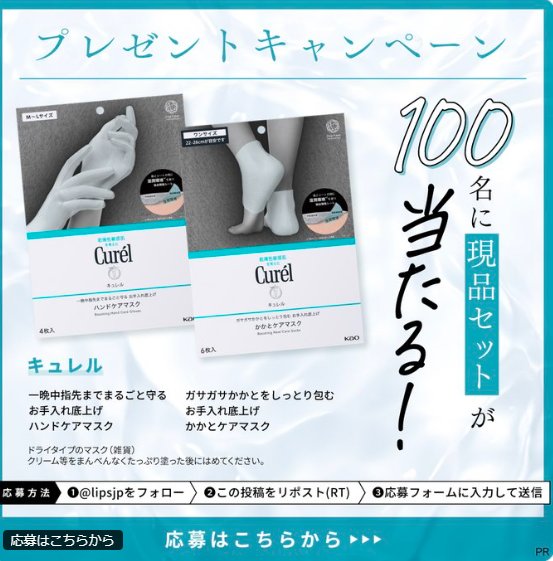 懸賞情報商品モニターキュレルのお手入れ底上げマスクがお試しできる商品モニター懸賞 キャンペーン名:キュレル お手入れ底上げマスク モニター企画当選賞品:キュレル お手入れ底上げマスク商品モニター当選人数:100名様応募条件:X(Twitter)アカウントで応募企業名:LIPSコメント:※公開のX(旧Twitter)アカウントを持っている など条件あり この懸賞に応募する2025年10月16日(残り5日) 見逃せない懸賞商品券 最大5,000円分合計52,000名様エイトフォーパテ無料サンプル対象者全員【無料体験可能】子ども向け「習い事・プログラミング教室」すこやかM1サンプル / 赤ちゃんに届くDHAサンプル毎月1,000名様 / 毎月500名様サンスターファミリーミュージカル招待券協賛企業によって異なりますカウネット オリジナル商品毎月50名様 応募可能な懸賞関連する当選報告 最大1,000ポイント分のLINEポイントがその場で当たるキャンペーン!締切日不明殿堂入りグルメが当たる おとりよせネットの豪華SNSキャンペーン残り4日【平和堂×伊藤ハム】USJ 1デイ・スタジオ・パスが当たる豪華レシート懸賞残り27日全プレ!MYサン生缶がかならずもらえるサントリーのクローズド懸賞2026年01月06日(賞品によって異なります)ラグジュアリーなスペシャル美容家電や宿泊チケットが当たる豪華キャンペーン残り4日宿泊券やコスメ・日用品が当たるキャンペーン☆定期開催 オークワ×日清食品のハガキ懸賞で「日清食品商品詰め合わせ」が当選しました!ポチカム「Wチャンス【無料モニター募集】新しくなったパンテーンで「あの頃のバージンヘア」へ!」マックスバリュ中部・サッポロビールのハガキ懸賞で「うなぎとひつまぶしセット」が当選しました☆acureのTwitter懸賞で「朝の茶事2ケース」が当選しました!株式会社I-neのキャンペーンで「RUBY MUSHROOM」詰め合わせが当選しました☆サントリーのクローズド懸賞で「豪華晩酌セット」が当選しました! 関連情報: X懸賞(Twitter懸賞)オープン懸賞ネット懸賞SNS懸賞商品モニター美容・健康・コスメ懸賞情報 限定条件あり懸賞スキンケア美容グッズCurel|キュレル HOME懸賞情報応募方法SNS懸賞X懸賞(Twitter懸賞)キュレルのお手入れ底上げマスクがお試しできる商品モニター懸賞 2025年10月10日 更新:ものりんず@懸賞主婦【厳選】毎日応募 【全て】毎日応募