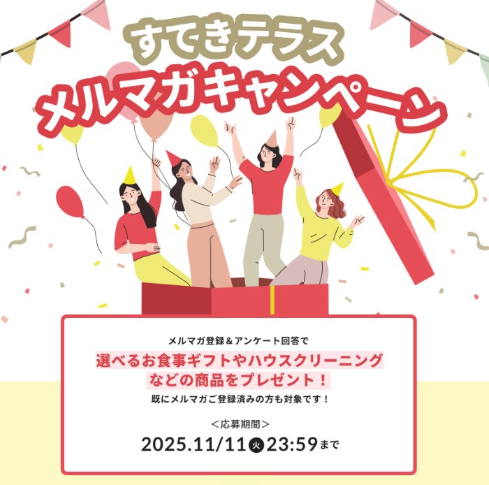 懸賞情報リンベルのカタログギフトやノンフライヤーも当たる豪華キャンペーン 懸賞名:すてきテラス メルマガキャンペーン当選賞品&当選人数:リンベル カタログギフト(2名様)ノンフライヤー(3名様)C賞:キッチン換気扇クリーニング(5名様)応募条件:メルマガ登録して応募企業名:長谷工コミュニティ この懸賞に応募する2025年11月11日(残り19日) 見逃せない懸賞クリスマスケーキ1,700名様ちいかわオリジナル赤マグ3,333名様サンリオの幼児向け英語教材がお試しできる無料モニターキャンペーンUSJ ハロウィーン初日貸切招待券 / スタジオ・パス4,750組12,000名様 / 1,000組2,000名様えらべるPay、大会記念グッズなど合計1,270名様グリコ商品いろいろ賞品によって異なります 応募可能な懸賞関連する当選報告 【CoCo壱番屋】オリジナルネーム入りスプーンが当たるレシートキャンペーン残り8日全プレ☆はくばくオリジナルQUOカードがもらえるポイントキャンペーン!締切日未定泊まれるレストラン・オーベルジュ 「1泊2日の美食体験チケット」が当たるメルセデス・ベンツの試乗キャンペーン残り64日QUOカード3,000円分がその場で当たる!マルトモのクローズドキャンペーン限定パッケージが無くなり次第終了500名様にえらべるPay200円分がその場で当たるXキャンペーン残り11日毎月開催!JA香川県の農産物などが当たるクイズキャンペーン定期開催 マルサン「豆乳セット&レシピカード プレゼント!」P&Gのハガキ懸賞で「P&G商品ギフトセット」が当選しました♪DyDoのキャンペーンで「ぷるっシュ!!ゼリー×スパークリング6本セット」が当選しました☆@cosme「IOPE(アイオペ)プレゼント企画」@cosme「三菱UFJニコス ギフトカード」が当選しました♪竹田の塩辛フェアーで北海道産「ななつぼし」が当選しました♪ 関連情報: オープン懸賞ネット懸賞家電・デジタル機器現金・金券・ギフト券豪華・高額懸賞懸賞情報 キッチングッズ|調理器具調理家電カタログギフト HOME懸賞情報応募方法ネット懸賞リンベルのカタログギフトやノンフライヤーも当たる豪華キャンペーン 2025年10月20日 更新:ものりんず@懸賞主婦【厳選】毎日応募 【全て】毎日応募