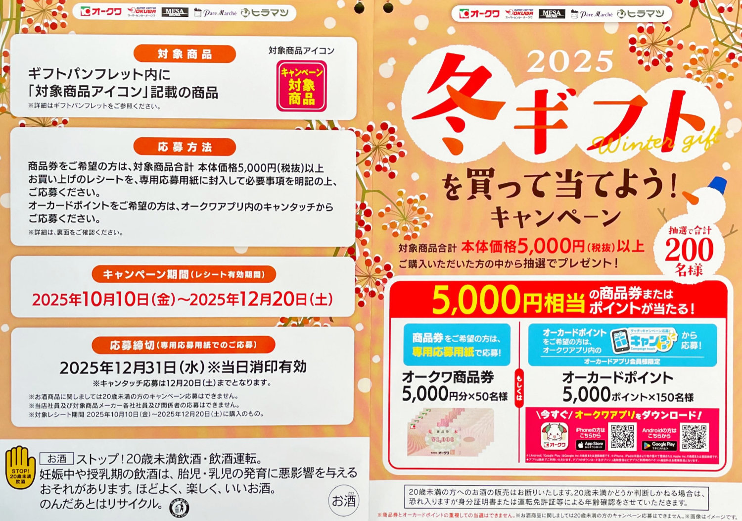 【オークワ】5,000円相当の商品券 または ポイントが当たるキャンペーン