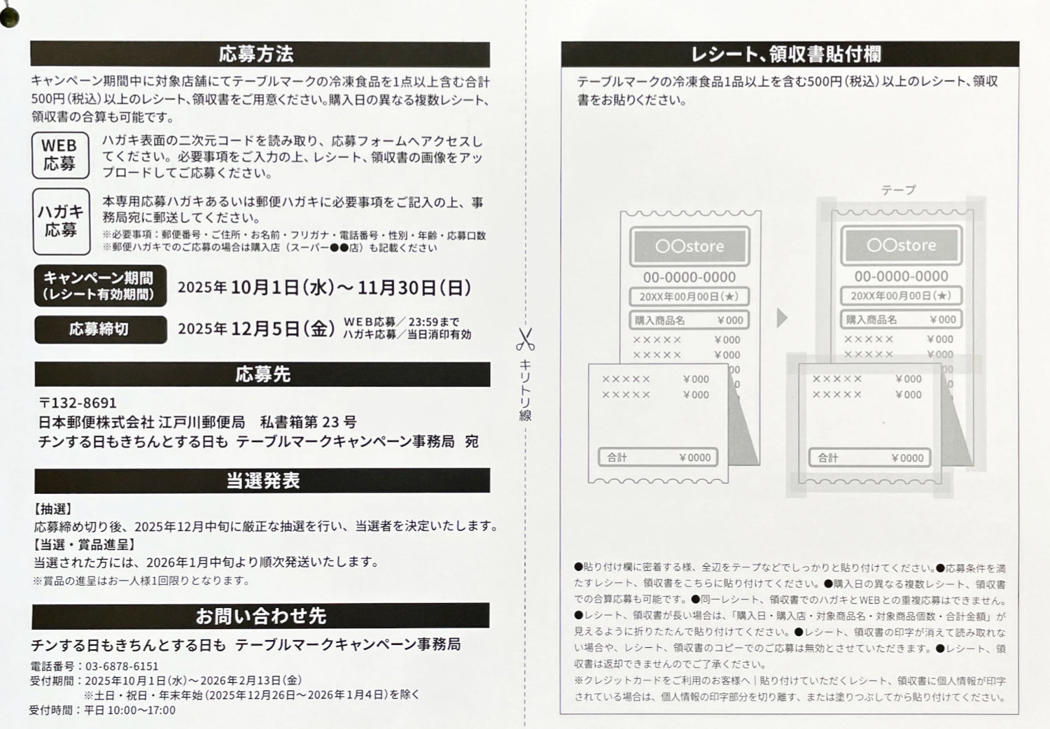 レシート有効期限:2025年10月01日 ~ 2025年11月30日