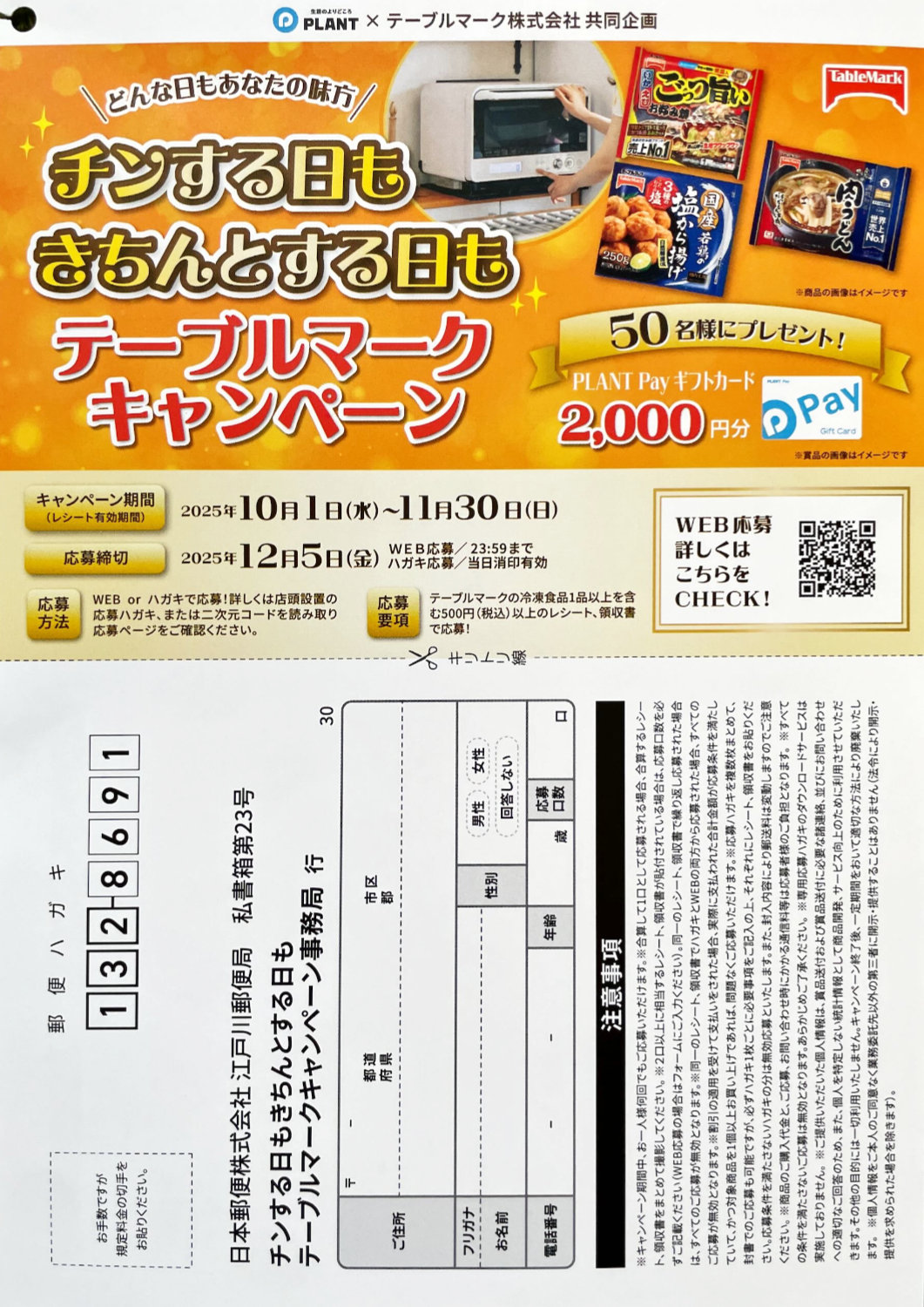 【PLANT×テーブルマーク】2,000円分のPLANT Payギフトカードが当たるキャンペーン