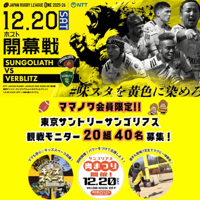 懸賞情報商品モニタープロラグビーチーム「東京サントリーサンゴリアス」の試合観戦モニター募集キャンペーン キャンペーン名:12/20(土)開催!プロラグビーチーム「東京サントリーサンゴリアス」試合観戦モニター大募集!当選賞品:「東京サントリーサンゴリアス」試合観戦モニター当選人数:2名20組様応募条件:アンケートに答えて応募企業名:ママノワコメント:※モニター期間中にご自身のInstagram(公開アカウントに限る)にて試合観戦当日のの動画・写真付き試用レポートができる方 など条件あり この懸賞に応募する2025年12月01日(残り10日) 見逃せない懸賞新パーフェクトサントリービール10,000名様えらべるPay 最大10,000円分1,000名様【無料体験可能】子ども向け「習い事・プログラミング教室」USJ ハロウィーン初日貸切招待券 / スタジオ・パス4,750組12,000名様 / 1,000組2,000名様宝塚歌劇ペア鑑賞券 / カタログギフト / QUOカードPay 500円分100名様 / 100名様 / 800名様オルビス無料サンプルセット応募者全員 応募可能な懸賞関連する当選報告 信州スキー場のリフト券が当たる豪華ハガキキャンペーン残り24日毎日応募やその場で抽選もアリ☆dポイントが当たるキャンペーン♪定期開催【サンエー×プリマハム】東京ディズニーランド ザ・ダイヤモンドホースシュー 貸切ご招待残り43日【ドン・キホーテ×アピタ・ピアゴ・ユーストア×サッポロビール】最大1万円分のmajicaギフト券が当たるもらえるお得なキャンペーン残り40日アイラブデスク 2026年卓上カレンダーが2,026名様に当たるキャンペーン残り9日ARAS深皿セットやアマギフが当たるエスビー食品のクローズド懸賞残り35日 ロッテのキャンペーンで「お菓子包み」が当選しました♪Suntory「購入チェーン商品券」が当選しました!ピエトロのキャンペーンで「もっとふってPATFUTTEセット」が当選しました!新日本スーパーマーケット同盟×日清のハガキ懸賞で「どん兵衛食べ比べセット」が当選しました☆「ママゴコロ」のオープニングキャンペーンに当選!キリンビールの懸賞で「とらふく刺身セット+SPRING VALLEY」が当選しました! 関連情報: オープン懸賞育児・子育て懸賞ネット懸賞Instagram懸賞イベント・エンタメ豪華・高額懸賞SNS懸賞商品モニターベビー・キッズ・おもちゃ遊園地・テーマパーク・イベント懸賞情報その他 限定条件あり懸賞東京関東(茨城・栃木・群馬・埼玉・千葉・東京・神奈川)スポーツ特別な体験|夢の実現育児・子育てママノワ HOME懸賞情報応募方法ネット懸賞プロラグビーチーム「東京サントリーサンゴリアス」の試合観戦モニター募集キャンペーン 2025年11月18日 更新:ものりんず@懸賞主婦【厳選】毎日応募 【全て】毎日応募 クリスマス懸賞 年末年始懸賞