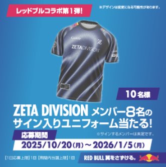 懸賞情報その場で当たるZETA DIVISION サイン入りユニフォームが当たるサントリー自販機限定キャンペーン 懸賞名:レッドブルコラボ第1弾! ZETA DIVISION サイン入りユニフォーム当たる!キャンペーン当選賞品:ZETA DIVISION サイン入りユニフォーム当選人数:10名様応募条件:LINEアカウントで応募企業名:サントリー この懸賞に応募する2026年01月05日(残り40日) 見逃せない懸賞アサヒスーパードライ ドライクリスタル 無料引換クーポン2,000名様デジタルギフト 500円相当 / 特製鍋焼うどん / 鍋島焼のプレミアムどんぶり10,000名様 / 2,000名様 / 300名様オルビス無料サンプルセット応募者全員どん兵衛グッズ合計1,000名様ポケモン・ガリガリ君 アウトドアグッズ1,000名様サンリオの幼児向け英語教材がお試しできる無料モニターキャンペーン 応募可能な懸賞関連する当選報告 お米やジェフグルメカードも当たるクレハのクローズド懸賞残り42日全プレもアリ!豪華賞品が当たるヘルシア購入キャンペーン残り26日向井康二オリジナルクリアファイルも当たるりちふれの豪華キャンペーン残り29日松田元太オリジナルブランケットが当たる味の素のクローズドキャンペーン残り30日しまじろうグッズの子育て応援アイテムが当たる豪華キャンペーン♪2027年3月31日(全4回開催)最大5,000円分のえらべるPayがもらえる日立のオール電化応援キャンペーン残り66日 ヤマナカ×カゴメのハガキ懸賞で「カゴメ商品詰め合わせ」が当選しました!集英社「エンリッチセラム CB・エンリッチドクリーム CB サンプル」スギ薬局×ユニリーバのアプリ懸賞で「myse スカルプリフト」が当選しました!Lidea(リディア)「会員登録キャンペーン」マックスバリュ東海×おやつカンパニーのハガキ懸賞で「お菓子詰め合わせ」が当選しました☆バロー・森永のハガキ懸賞で「おいしいコラーゲンドリンク」が当選しました! 関連情報: オープン懸賞LINE懸賞その場で当たるネット懸賞SNS懸賞懸賞情報コツコツ懸賞・ポイ活ファッション・アクセ・貴金属毎月・毎週・定期懸賞 ファッション・衣料品レッドブルタレント・有名人サントリー HOME懸賞情報応募方法SNS懸賞LINE懸賞ZETA DIVISION サイン入りユニフォームが当たるサントリー自販機限定キャンペーン 2025年11月19日 更新:ものりんず@懸賞主婦【厳選】毎日応募 【全て】毎日応募 クリスマス懸賞 年末年始懸賞