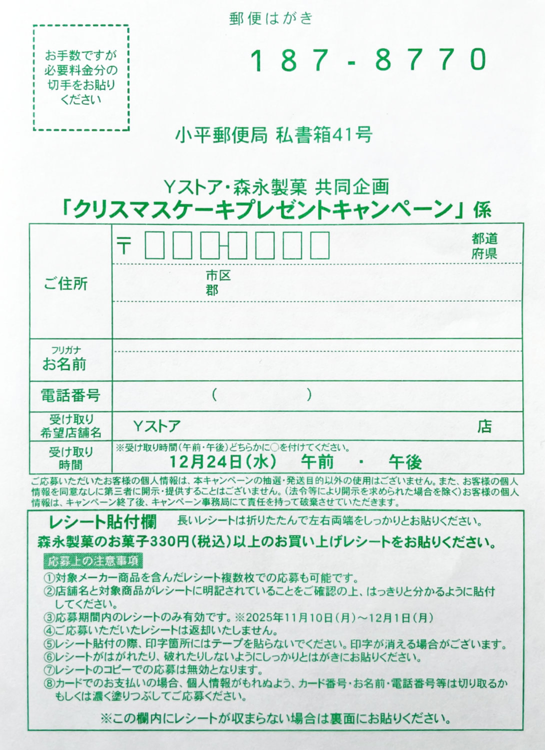 【Yストア×森永製菓】クリスマスケーキプレゼントキャンペーン