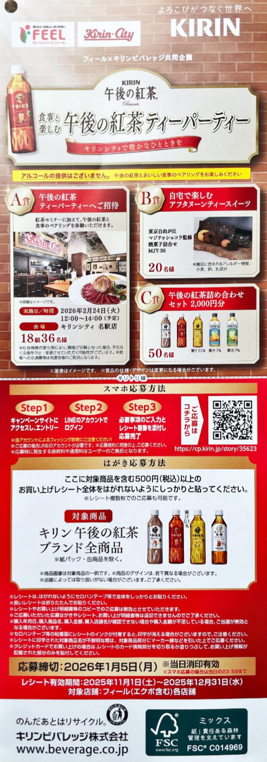【フィール×キリン】午後の紅茶ティーパーティー招待券やスイーツも当たるキャンペーン