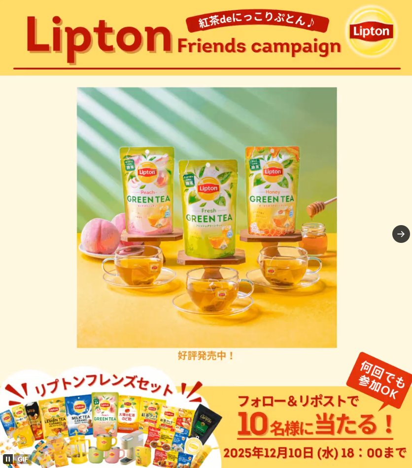 懸賞情報リプトンフレンズセットが当たる毎日応募Xキャンペーン 懸賞名:リプトンフレンズキャンペーン当選賞品:リプトンフレンズセット当選人数:10名様応募条件:X(Twitter)アカウントで毎日応募企業名:リプトン この懸賞に応募する2025年12月10日 18時00分(残り9日) 見逃せない懸賞SUNTORY × hololive ねぽらぼ限定コラボグッズ合計2,700名様USJ 一部エリア貸切イベントチケット / dポイント 1,000ポイント500組2,000名様 / 2,000名様入園無料招待券、グルメなど賞品によって異なりますOisix野菜+ケンミン焼ビーフン各回250名様マスク&クリームサンプル20,000名様幼児、小・中・高校生向け通信教育「スマイルゼミ」無料資料希望者全員 応募可能な懸賞関連する当選報告 1,000名様にリカルデント×しろたんオリジナルグッズが当たるキャンペーン残り2日【マックスバリュ東海×メーカー各社】水族館チケット+フェリー乗船券も当たる豪華懸賞残り4日アマギフやジェラートピケの育児アイテムが当たる豪華アンケートキャンペーン残り18日最大10,000円分のデジタルギフトがその場で当たるLINE懸賞残り16日6,000名様にえらべるPayが当たる歯科検診応援キャンペーン2025年12月31日(全6回開催)BE:FIRSTの直筆サイン入りポスターなども当たるユニリーバのクローズド懸賞残り30日 フィール×サッポロのキャンペーンで「ヱビス4種の味わいセット」が当選しました!リードオフジャパンのTwitter懸賞で「アップルタイザー さくらデザインボトル・シャンパングラスセット」が当選しました☆オークワ&ライオンのハガキ懸賞で「ライオン商品詰め合わせセット」が当選しました♪集英社「MAQUIA ONLINE × Joma プレゼント」アオキスーパー×ニッスイ「買い物券 1,000円分」が当選しました♪おやつカンパニーのハガキ懸賞で「すみっコぐらしタオル」が当選しました! 関連情報: X懸賞(Twitter懸賞)オープン懸賞毎日応募ネット懸賞SNS懸賞食品・飲料懸賞情報生活用品・雑貨・家具 詰め合わせ・セットドリンク・飲料食器・グラスお茶・紅茶リプトン HOME懸賞情報応募方法SNS懸賞X懸賞(Twitter懸賞)リプトンフレンズセットが当たる毎日応募Xキャンペーン 2025年12月01日 更新:ものりんず@懸賞主婦【厳選】毎日応募 【全て】毎日応募 クリスマス懸賞 年末年始懸賞