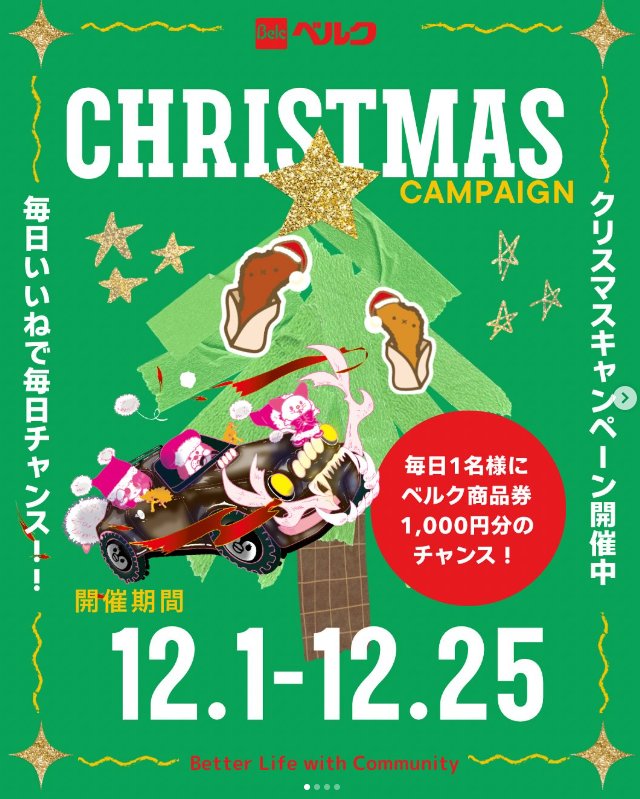 懸賞情報毎日1名様にベルク商品券が当たるInstagramクリスマスキャンペーン 懸賞名:Instagramクリスマスキャンペーン当選賞品:ベルク商品券 1,000円分当選人数:毎日1名様応募条件:Instagramアカウントで応募企業名:ベルク この懸賞に応募する2025年12月25日(残り23日) 見逃せない懸賞QUOカードPay 300円分毎週100名様100万円相当分の豪華賞品 / 有馬記念当日招待席+JTBトラベルギフト 2万円分 他1名様 / 10組20名様 他はじめてのベビースタイ応募者全員Coke ONドリンクチケット / PayPayポイント 500ポイント / BALMUDA ReBaker 他100,000名様 / 10,000名様 / 50名様 他QUOカード 1,000円分 / 秋田県産米 / 丸美屋商品詰め合わせ毎月600名様 / 毎月100名様 / 毎月800名様豪華賞品(月替り)賞品によって異なります 応募可能な懸賞関連する当選報告 毎月15名様にJAタウンのオススメ商品が当たるメルマガ会員限定キャンペーン毎月末日10万円分のJTBトラベルギフトやSOFINA iP スキンケアセットも当たる豪華懸賞残り59日3,900名様に豪華賞品が当たるヤマト運輸の宅急便キャンペーン残り26日PayPayポイント最大5,000円分が当たる月桂冠のクローズドキャンペーン残り29日SHARPのテレビや掃除機、キッチン家電が当たる豪華キャンペーン☆締切日不明毎月開催!宿泊券や育児グッズなどが当たるミキハウスのLINEキャンペーン毎月開催 マクドナルドのTwitter懸賞で「ベーコンマックポーク ひと夏分」が当選しました☆ヤマザキビスケットの懸賞で「ルヴァンプレートセット」が当選しました☆ヤマナカ・森永製菓のハガキ懸賞で「ハイチュウUSA」が当選しました♪花王「Curel 泡ボディウォッシュ+ジェルローション」が当選しました!イオンのTwitter懸賞で「イオンギフトカード 5,000円分」が当選しました☆ニチバンのハガキ懸賞で「フレンチカップケーキ」が当選しました☆ 関連情報: オープン懸賞毎日応募ネット懸賞Instagram懸賞現金・金券・ギフト券クリスマス懸賞SNS懸賞懸賞情報 #クリスマスボックス2025記念日・特別な日商品券・ギフト券・金券 HOME懸賞情報応募方法ネット懸賞毎日1名様にベルク商品券が当たるInstagramクリスマスキャンペーン 2025年12月02日 更新:ものりんず@懸賞主婦【厳選】毎日応募 【全て】毎日応募 クリスマス懸賞 年末年始懸賞