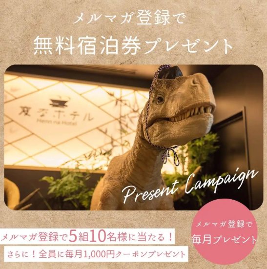 懸賞情報毎月抽選!変なホテルの無料宿泊券が当たるメルマガ登録キャンペーン 懸賞名:メルマガ登録で毎月無料宿泊券が当たる!当選賞品:変なホテルの無料宿泊券当選人数:毎月5組10名様応募条件:メルマガ登録して応募企業名:HISホテルグループ この懸賞に応募する毎月抽選 見逃せない懸賞Ado限定コラボグッズ合計1,000名様勝利の女神:NIKKE × ZONe ENERGYコラボグッズ1,200名様サイベックス ミオス ベビーカー / 洗えるベビー布団セット / パナソニック 電動自転車 他1名様 / 3名様 / 1名様 他QUOカードPay 1,000円分1,000名様道の駅厳選グルメ / ツルハポイント or WAON POINT 50ポイント合計3,600名様 / 20万名様Disneyのおしりふき毎月1名様 応募可能な懸賞関連する当選報告 【定期開催】美容コスメが当たる!ヨドバシカメラのX懸賞♪随時開催【アプリ懸賞】体験プログラムやカルビー商品に応募できるキャンペーン♪随時開催まんまるうさぎ「ポンちゃん」グッズセットが毎月当たるプレゼントキャンペーン♪毎月10日~翌月9日NOBROCK TVのオリジナルグッズが当たるエースコックのコラボキャンペーン残り47日オリジナル純金小判やぼんち商品が当たる豪華Xキャンペーン残り5日全プレ!「モンプチ」×「ポール & ジョー」のコラボアイテムがもらえるキャンペーン残り60日 過去最高額「100万円分のAmazonギフト券」がIG証券の懸賞で当選!!PLANT×キリンのハガキ懸賞で「伊勢赤どり味噌漬け」が当選しました!サッポロビールのLINE懸賞で「LINEポイント5,000ポイント」が当選しました♪味の素「おすすめギョーザ3種セット」が当選しました!モニプラのキャンペーンで「製菓材料セット」が当選しました♪ESSEのハガキ懸賞で「日清オイリオ 新ボトル4種セット」が当選しました☆ 関連情報: オープン懸賞旅行・宿泊ネット懸賞豪華・高額懸賞懸賞情報毎月・毎週・定期懸賞 ホテル・旅館宿泊券・旅行券 HOME懸賞情報応募方法ネット懸賞毎月抽選!変なホテルの無料宿泊券が当たるメルマガ登録キャンペーン 2025年12月11日 更新:ものりんず@懸賞主婦【厳選】毎日応募 【全て】毎日応募 クリスマス懸賞 年末年始懸賞