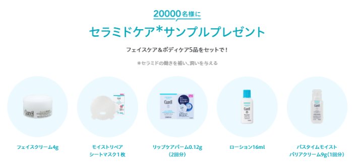 懸賞情報無料サンプルキュレルのフェイスケア&ボディケアセットがサンプルでお試しできるキャンペーン 懸賞名:キュレル セラミドケア*サンプルプレゼントキャンペーン当選賞品:キュレル フェイスケア&ボディケア サンプル当選人数:20,000名様応募条件:アンケートに答えて応募企業名:花王 この懸賞に応募する2025年12月12日(残り9日) 見逃せない懸賞Coke ONドリンクチケット / トロフィーツアー観覧チケット10,000名様 / 320組1,280名様ジッパーバッグ / キーホルダー / QUOカード 500円分1,000名様 / 300名様 / 200名様カタログギフト / 特大うなぎ / giftee Box 5,000円分 他合計29名様 / 10名様 / 20名様 他サウナイキタイSTOREクーポン 10,000円分+JTBトラベルギフト 40,000円分 他3名様 他えらべるPay 1,000円分 / Oisix 旬の野菜セット / 電気せいろ蒸し器3,000名様 / 1,500名様 / 300名様オリジナル名入れ絵本ダウンロードデータ対象者全員 応募可能な懸賞関連する当選報告 Wチャンスもアリ!ギフト券やえらべるPayが当たる白元アースの豪華懸賞2026年01月31日(全2回開催)毎月10名様にKATEスペシャルセットが当たる推しKATE投稿キャンペーン毎月開催ナンバーワン戦隊ゴジュウジャーのおもちゃが当たるフォト&ぬりえコンテスト2026年01月31日(毎月末日締切)クラシエ商品やデジタルギフトが当たる会員限定キャンペーン残り33日全プレ☆はくばくオリジナルQUOカードがもらえるポイントキャンペーン!締切日未定オリジナルQUOカードが当たる毎日応募Xキャンペーン残り6日 ミツカンのInstagram懸賞で「ポン酢4種セット」が当選しました!富士薬品&ユニ・チャームのハガキ懸賞で「選べる国産和牛カタログギフト」が当選しました!ヤマザキのハガキ懸賞で「ヤマザキグループのお菓子詰め合わせ」が当選しました!ヤマナカ×日清のハガキ懸賞で「カップヌードルローリングストックセット」が当選しました☆イセ食品のハガキ懸賞で「森のたまごギフト券 3枚」が当選しました☆伊藤園「NEW TEAs’TEA 先行体験セット」が当選しました♪ 関連情報: オープン懸賞ネット懸賞無料サンプル・試供品大量当選美容・健康・コスメ懸賞情報 スキンケア詰め合わせ・セットCurel|キュレル花王 HOME懸賞情報応募方法ネット懸賞キュレルのフェイスケア&ボディケアセットがサンプルでお試しできるキャンペーン 2025年12月02日 更新:ものりんず@懸賞主婦【厳選】毎日応募 【全て】毎日応募 クリスマス懸賞 年末年始懸賞