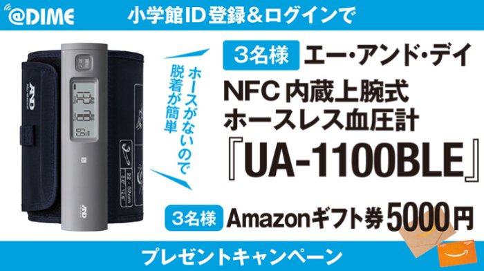 懸賞情報上腕式ホースレス血圧計やAmazonギフト券が当たる豪華懸賞 懸賞名:上腕式ホースレス血圧計「UA-1100NFC」やAmazonギフト券が当たるプレゼントキャンペーン当選賞品&当選人数:上腕式ホースレス血圧計「UA-1100NFC」(3名様)Amazonギフト券 5,000円分(3名様)応募条件:会員登録して応募企業名:小学館 この懸賞に応募する(応募期間終了)2025年12月25日今すぐ応募可能な懸賞はコチラから 見逃せない懸賞グーン製品 無料サンプル毎月6,000名様2026ワールドベースボールクラシック観戦チケット / デジタルポイント 30ポイント10組40名様 / 対象商品を購入して必ずもらえるパンパース オムツ毎月1名様対象商品200円引きクーポン2万名様新車購入時に使える購入支援 最大30万円合計4,700名様妊婦さん必見!無料で試せる「紙おむつ・粉ミルク」のお得情報 BEST10♪ 応募可能な懸賞関連する当選報告 とちぎ和牛や乳製品詰め合わせなども当たる豪華レシートキャンペーン残り3日ディズニー貸切招待券やプリマハム商品詰め合わせも当たる豪華ハガキ懸賞2026年04月03日(全2回開催)【東海地方限定】最大1,600ポイント分のえらべるPayが当たるクローズドキャンペーン残り11日コンビニ 商品が平日毎日当たるX懸賞☆締切日不明(平日限定開催)QUOカードPayがその場で当たる「0」のつく日限定Xキャンペーン毎月0のつく日に開催10万円分の星野リゾート宿泊ギフトが当たる豪華クイズキャンペーン2026年02月28日(全3回開催) LG生活健康の懸賞で「香りサロン フローラルの香り」が当選しました☆BLONET「True Nature シンデレラタイム ブースターセラム ナノクレンジングゲル 敏感肌用」APA HOTEL×RANMARUのキャンペーンで「神の舌を持つ男のムビチケ」が当選しました!フィール・カゴメ・キユーピーのハガキ懸賞で「カゴメ・キユーピー詰め合わせ」が当選しました☆コノミヤ×AGFのキャンペーンで「KANIEベーカリー 朝食パン大人気セット」が当選しました♪ドンレミーのX懸賞で「冷凍ミルクレープ」が当選しました! 関連情報: オープン懸賞ネット懸賞豪華・高額懸賞現金・金券・ギフト券美容・健康・コスメ懸賞情報 Amazonギフト券商品券・ギフト券・金券生活家電健康・ヘルスケア会員登録小学館 HOME懸賞情報応募方法ネット懸賞上腕式ホースレス血圧計やAmazonギフト券が当たる豪華懸賞 2025年12月08日 更新:ものりんず@懸賞主婦【厳選】毎日応募 【全て】毎日応募 年末年始懸賞