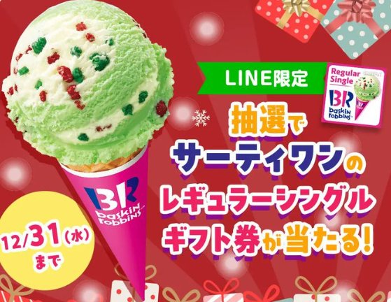 懸賞情報その場で当たるサーティワンのデジタルギフトがその場で当たるLINE懸賞 懸賞名:キッズリパブリック当選賞品:サーティワン デジタルギフト当選人数:不明応募条件:LINEアカウントで応募企業名:イオン この懸賞に応募する2025年12月31日(残り18日) 見逃せない懸賞Amazonギフト 最大50,000円分2,025名様お好きな賞品 最大10万円相当 / デジコ 500円分500名様 / 500名様サイベックス ミオス ベビーカー / 洗えるベビー布団セット / パナソニック 電動自転車 他1名様 / 3名様 / 1名様 他えらべるPay 1,000円分 / お菓子詰め合わせ500名様 / 1,000名様シャープ プラズマクラスター ドレープフロードライヤー / バルミューダ バルミューダ ザ・トースター / Meta Quest 3S 128GB / デジタルギフト各回50名様 / 各回50名様 / 各回50名様 / 100,000名様Dyson コードレス掃除機 / 電動アシスト自転車 / combi ベビーカー 他1名様 / 1名様 / 1名様 他 応募可能な懸賞関連する当選報告 全プレ!オリジナルキッチンタイマーが必ずもらえるお得なキャンペーン残り27日毎月開催!井藤漢方製薬商品が当たるアンケートキャンペーン♪毎月末日ONE PIECEのアクスタが当たるジョイフルのレシートキャンペーン2026年01月13日15:00(全2回開催)黒潮牛やオリジナルステンレスボトルなどが当たるクローズドキャンペーン残り49日毎日1名様にベルク商品券が当たるInstagramクリスマスキャンペーン残り12日妊娠・育児が楽しくなる賞品が当たるクリスマスハンドメイドコンテストキャンペーン残り13日 Roots「夢のマンガ大人買い!キャンペーン」buzzLife「奇跡!?の198kcalを体験 第2弾(日清食品)プロジェクト」に参加決定!サントリーのクローズド懸賞で「松阪牛 焼肉用」が当選しました!おかしのまちおか×不二家の懸賞で「お菓子詰め合わせ」が当選しました!「みんなで選ぼう!AMD アンバサダーコンテスト」ヤマナカ×ロッテのハガキ懸賞で「おうちでおかし教室セット」が当選しました! 関連情報: オープン懸賞LINE懸賞毎日応募その場で当たるネット懸賞無料クーポン・引換券SNS懸賞懸賞情報 クーポン・無料券AEON|イオンサーティワンアイスクリーム HOME懸賞情報応募方法SNS懸賞LINE懸賞サーティワンのデジタルギフトがその場で当たるLINE懸賞 2025年12月11日 更新:ものりんず@懸賞主婦【厳選】毎日応募 【全て】毎日応募 クリスマス懸賞 年末年始懸賞
