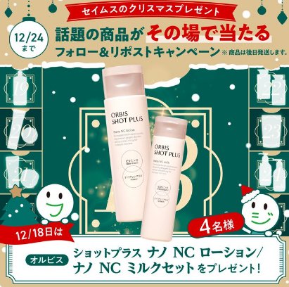 懸賞情報その場で当たる日替わりで人気商品が当たる毎日応募Xキャンペーン 懸賞名:クリスマスプレゼント当選賞品:人気商品(日替わり)当選人数:賞品によって異なります応募条件:X(Twitter)アカウントで毎日その場で当たる企業名:セイムス この懸賞に応募する2025年12月24日(残り5日) 見逃せない懸賞ちいかわセーター / クッション&ブランケット / 専用QUOカードPay 1,000円分300名様 / 100名様 / 1,000名様ジッパーバッグ / キーホルダー / QUOカード 500円分1,000名様 / 300名様 / 200名様Panasonic 電気圧力鍋 / Nintendo Switch / LOGOS ポップフルシェルター 他1名様 / 1名様 / 1名様 他「美食の晩餐会」 ペア参加権 / えらべるPay 100ポイント10組20名様 / 10,000名様味の素商品やオリジナルグッズなど賞品によって異なります宝塚歌劇 花組 楽天グループ貸切公演チケット1,000組2,000名様 応募可能な懸賞関連する当選報告 合計9,190名様に全額キャッシュバックが当たるQUICPay利用キャンペーン残り100日Wチャンスもアリ!至極のごちそうグルメが当たるサントリーのクローズド懸賞残り6日ドラゴンクエストの職業Tシャツがその場で当たるクローズドキャンペーン残り44日豪華家電やスイーツも当たるAHMAD TEA購入キャンペーン2026年01月31日(全2回開催)大阪王将の元祖肉餃子100個引換券が当たるクリスマスキャンペーン残り2日毎週10名様に豪華賞品が当たるSUBARUのWEB試乗予約キャンペーン2026年03月31日(毎週抽選) DCMホールディングス&マンダムのハガキ懸賞で「ギフトカード 5,000円分」が当選しました☆フィール×JA中野市×ミツカンのハガキ懸賞で「きのこ鍋セット」が当選しました♪ポッカサッポロのハガキ懸賞で「旅茶列島シリーズトライアルキット」が当選しました♪Yストア・日本ハムのハガキ懸賞で「ヨシヅヤ商品券 2,000円分」が当選しました!集英社「MAQUIA ONLINE × Joma プレゼント」P&G「PANTENE トリコン・アンバサダーセット」が当選しました♪ 関連情報: X懸賞(Twitter懸賞)オープン懸賞毎日応募ネット懸賞その場で当たるクリスマス懸賞SNS懸賞美容・健康・コスメ懸賞情報 #クリスマスボックス2025記念日・特別な日スキンケア HOME懸賞情報応募方法SNS懸賞X懸賞(Twitter懸賞)日替わりで人気商品が当たる毎日応募Xキャンペーン 2025年12月19日 更新:ものりんず@懸賞主婦【厳選】毎日応募 【全て】毎日応募 クリスマス懸賞 年末年始懸賞