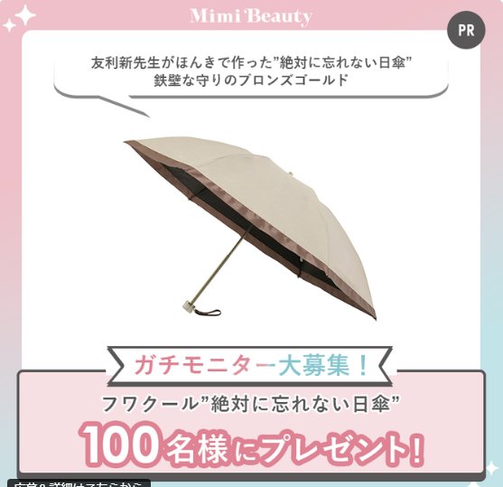 懸賞情報商品モニター”絶対に忘れない日傘”のガチモニター募集キャンペーン キャンペーン名:「フワクール”絶対に忘れない日傘”」のガチモニター企画に参加してくれる人募集!当選賞品:フワクール”絶対に忘れない日傘”商品モニター当選人数:100名様応募条件:会員登録して応募企業名:トレンダーズコメント:※公開のXアカウントをお持ちの方 など条件あり この懸賞に応募する2026年01月25日(残り2日) 見逃せない懸賞ベビースターコンパクトホットプレート / ホシオくんドデカタオル各回45名様 / 各回130名様星野リゾート宿泊ギフト 50,000円分 / サンドラッグポイント 1,000pt / ライオン対象商品引換クーポン100名様 / 2,500名様 / 3,000名様カウネット オリジナル商品毎月50名様オリジナルマグカップ / QUOカードPay 最大1,000円分300名様 / 700名様Amazonギフト 最大1万円分1,000名様入園無料招待券、グルメなど賞品によって異なります 応募可能な懸賞関連する当選報告 チャイルドシートやアマギフ3万円分などの豪華賞品が当たるアンケートキャンペーン残り26日特別な体験ツアーなどが当たるKADOKAWAの豪華クローズドキャンペーン2026年04月01日(全3回開催)ベビー&マタニティグッズや家電などが当たるアンケートキャンペーン♪残り8日最大10万円相当のPayPayポイントが当たる豪華大量当選LINE懸賞残り67日Wチャンスもアリ!豪華家電やコスメも当たる日本製紙クレシアのレシート懸賞残り36日松屋・松のや×ちいかわ コラボのどんぶりが当たるクローズドキャンペーン残り67日 よつ葉牛乳「探偵はBARにいる2 映画鑑賞券」が当選しました☆mi:te × babycoのキャンペーンで「に~っこり」絵本が当選しました☆マックスバリュ×モンスターエナジーのハガキ懸賞で「パーカー」が当選しました♪SUNSTAR「糖尿病とうまくつきあうサイト オーラルケアに関するアンケートの謝礼」JA全農長野のハガキ懸賞で「信州アルプス牛ロースすき焼き用」が当選しました☆ロート製薬「シャンプー&コンディショナー モニター」に当選しました☆ 関連情報: オープン懸賞ネット懸賞商品モニター懸賞情報生活用品・雑貨・家具 限定条件あり懸賞生活用品・雑貨・日用品会員登録 HOME懸賞情報応募方法ネット懸賞”絶対に忘れない日傘”のガチモニター募集キャンペーン 2026年01月22日 更新:ものりんず@懸賞主婦【厳選】毎日応募 【全て】毎日応募 年末年始懸賞