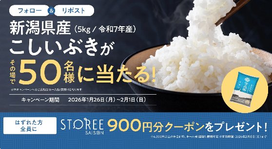 懸賞情報その場で当たる新潟県産 こしいぶき 5kgがその場で50名様に当たるXキャンペーン 懸賞名:フォロー&リポストキャンペーン当選賞品:新潟県産 こしいぶき 5kg当選人数:50名様応募条件:X(Twitter)アカウントでその場で当たる企業名:クレディセゾン この懸賞に応募する2026年02月01日(残り6日) 見逃せない懸賞サントリー セサミンEX 商品モニター1万名様キリン一番搾り 糖質ゼロ コンビニ無料引き換えクーポン15万5千名様ベビーカー / 抱っこ紐 / ベビーベッド / Amazonギフト 10,000円分 他1名様 / 1名様 / 1名様 / 3名様 他ノジマポイント 1,000pt1,000名様ラカントSシロップ3,000名様【無料体験可能】子ども向け「習い事・プログラミング教室」 応募可能な懸賞関連する当選報告 選りすぐりの絵本が当たる会員限定キャンペーン☆随時開催CANDY TUNEのオリジナルグッズが当たるクローズドキャンペーン残り4日デジタルギフト1,000円分がその場で当たる毎日応募Xキャンペーン残り3日【定期開催】豪華家電が当たる!ヤマダデンキのX懸賞♪随時開催ポイントで便利なサービスや豪華商品と交換できるキャンペーン!締切日不明Amazonギフトカード500円分が当たるSky株式会社のX懸賞残り5日 ウエルシア×花王のTwitter懸賞で「ソフィーナiP ダブル美容液2点セット」が当選しました♪「SUNSTAR ファミリーミュージカル 2016」が当選しました!サントリーのキャンペーンで「ハーゲンダッツギフト券」が当選しました♪グリコのクローズド懸賞で「収納スツール&DONBURI亭セット」が当選しました♪小学館のキャンペーンで「星野リゾート 界 加賀 宿泊券」が当選しました!Suntory「特茶カフェインゼロの6本セット」が当選しました♪ 関連情報: X懸賞(Twitter懸賞)オープン懸賞ネット懸賞その場で当たるSNS懸賞食品・飲料懸賞情報 食品・グルメお米クレディセゾン HOME懸賞情報応募方法SNS懸賞X懸賞(Twitter懸賞)新潟県産 こしいぶき 5kgがその場で50名様に当たるXキャンペーン 2026年01月26日 更新:ものりんず@懸賞主婦【厳選】毎日応募 【全て】毎日応募 年末年始懸賞