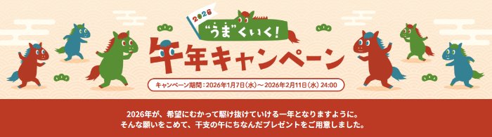 懸賞情報干支の午にちなんだプレゼントが当たる三菱の会員限定キャンペーン 懸賞名:2026年 “うま”くいく!午年キャンペーン当選賞品:干支の午にちなんだプレゼント当選人数:78名様応募条件:会員登録して応募企業名:三菱電機 この懸賞に応募する2026年02月11日(残り14日) 見逃せない懸賞Jリーグ観戦チケット合計150,000名様東京ディズニーリゾート・パークチケット / JCBギフトカード 2,000円分100組200名様 / 1,000名様宝商品詰め合わせ50名様アウトドアパーカー / ポケット付きTシャツ / Coke ON ドリンクチケット600名様 / 500名様 / 3万名様QUOカードPay 2,000円分各回50名様はじめてのベビースタイ応募者全員 応募可能な懸賞関連する当選報告 気になっていたあの商品をお得に試せるサイト「サンプル百貨店」常時開催全プレ☆QUOカードor図書カードが必ずもらえるキャンペーン!締切日不明最大10,000円分のえらべるPayがもらえる日立のお得なキャンペーン残り3日いとう和牛や田崎真也セレクトワインも当たるハガキキャンペーン残り31日Wチャンスもアリ!電気圧力鍋やサーロインステーキ肉が当たる豪華キャンペーン残り16日全プレ!急須やティーポットなどが必ずもらえる伊藤園のクローズドキャンペーン残り31日 ブルボンのTwitter懸賞で「濃厚チョコブラウニーピスタチオ&ピスタチオラッシュ」が当選しました♪Yストア・森永のハガキ懸賞で「木下大サーカスチケット」が当選しました♪ニチリウグループ・はごろもフーズのハガキ懸賞で「はごろもフーズオリジナルギフト」が当選しました☆グリコのキャンペーンで「スマイルプラス4点セット」が当選しました☆日本ハムのハガキ懸賞で「麦わらの一味タンブラーセット」が当選しました♪愛知トヨタのキャンペーンで「ドライブスルーギフトセット」が当選しました! 関連情報: 育児・子育て懸賞オープン懸賞ネット懸賞現金・金券・ギフト券ベビー・キッズ・おもちゃ懸賞情報生活用品・雑貨・家具 年末年始2025-2026赤ちゃん・育児用品生活用品・雑貨・日用品商品券・ギフト券・金券おもちゃ・ぬいぐるみ会員登録MITSUBISHI|三菱 HOME懸賞情報応募方法ネット懸賞干支の午にちなんだプレゼントが当たる三菱の会員限定キャンペーン 2026年01月26日 更新:ものりんず@懸賞主婦【厳選】毎日応募 【全て】毎日応募 年末年始懸賞
