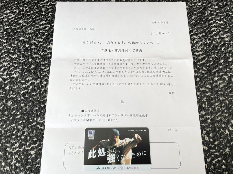 JA全農いわてのX懸賞で「オリジナル図書カード1,000円分」が当選しました!