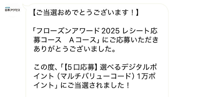 日本アクセスのクローズド懸賞で「デジタルポイント10,000ポイント」が当選しました!