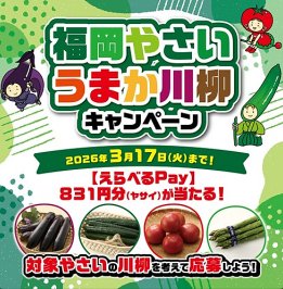 懸賞情報えらべるPay831円分が当たるJA全農ふくれんの川柳投稿キャンペーン 懸賞名:福岡やさい うまか川柳キャンペーン当選賞品:えらべるPay 831円分当選人数:15名様応募条件:作品を投稿して応募企業名:JA全農ふくれん この懸賞に応募する2026年03月17日(残り19日) 見逃せない懸賞ユニクロ商品モニター合計2,000名様ベビースターコンパクトホットプレート / ホシオくんドデカタオル各回45名様 / 各回130名様コズレオリジナルデザイン「出生届」メルマガ登録して必ずもらえるディズニー プライベート・イブニング・パーティー招待券 他各回合計1,000組2,500名様 他ハローキティぬいぐるみ / グルメカタログギフト / えらべるPay 500円相当10,000名様 / 6,000名様 / 2,000名様はじめてのベビースタイ応募者全員 応募可能な懸賞関連する当選報告 Wチャンスもアリ!BYDの新車が当たるホテルグリーンプラザ上越の豪華懸賞2026年04月05日17:00(全2回開催)ディズニーの仲間たちと一緒に写真撮影が楽しめるキャラクターグリーティング招待券が当たるキャンペーン2026年03月31(毎月開催)【コーナン×呉工業】2,000円分のコーナン商品券が当たるレシートキャンペーン残り2日毎月開催♪ジョンソン製品が当たるアンケートキャンペーン定期開催総額20万円の「くら寿司」お食事券が当たるX懸賞不定期開催Amazonギフトカード500円分が500名様にその場で当たるSkyのX懸賞残り2日 明治のクローズド懸賞で「オリゴスマートセット」が当選しました!アピタ・ピアゴ&ニッポンハムのハガキ懸賞で「ニッポハム商品詰め合わせ」が当選しました!ニッポンハムのハガキ懸賞で「オリジナル プレート&ボウルセット」が当選しました☆AEON SQUARE「新ヘルシア緑茶 6本セット」が当選しました☆日本製粉のハガキ懸賞で「サンリオキャラクターズ バスタオル」が当選しました☆カゴメのキャンペーンで「トマト苗 凛々子」が当選しました! 関連情報: オープン懸賞LINE懸賞ネット懸賞現金・金券・ギフト券SNS懸賞コンテスト懸賞情報写真投稿・作品投稿 電子マネー・ポイント俳句・川柳・標語・作文創作・アイデア HOME懸賞情報応募方法SNS懸賞LINE懸賞えらべるPay831円分が当たるJA全農ふくれんの川柳投稿キャンペーン 2026年02月18日 更新:ものりんず@懸賞主婦【厳選】毎日応募 【全て】毎日応募 年末年始懸賞