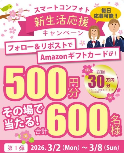 懸賞情報その場で当たるAmazonギフトカード500円分がその場で毎日当たるXキャンペーン 懸賞名:新生活応援キャンペーン当選賞品:Amazonギフトカード 500円分当選人数:600名様応募条件:X(Twitter)アカウントで毎日その場で当たる企業名:スマートコンフォト コンビニ証明写真 この懸賞に応募する2026年03月08日(残り6日) 見逃せない懸賞ユニバーサル・エクスプレス・パス毎日最大30組様旅行券 10万円分 / ハイサイソース / キーホルダー / 800円引アプリクーポン8名様 / 80名様 / 800名様 / 800名様カウネット オリジナル商品毎月50名様ヘナカラートリートメント無料サンプル応募者全員ピノ オリジナルグッズ賞品によって異なりますデジタルギフトカード 最大1万円分936名様 応募可能な懸賞関連する当選報告 アスタリフトBBクリーム無料サンプルセットがお得に試せる!締切日不明菌活レトルトセットやきのこセットも当たるホクトのクローズドキャンペーン2026年03月31日(全3回開催)毎月「Oh!Baby」シリーズアイテムが当たるクイズ懸賞♪毎月開催全プレもアリ☆オリジナルTシャツやQUOカードが当たるホームランバー購入キャンペーン♪キャンペーンによって異なります毎月開催!賞金10,000円がもらえるJAFの会員限定クロスワードキャンペーン定期開催カルテHDのトーンアップUV乳液サンプルが当たる大量当選キャンペーン残り11日 ニッポンハムのハガキ懸賞で「オリジナル プレート&ボウルセット」が当選しました☆ウテナのTwitter懸賞で「ゆず詰め合わせ」が当選しました♪コノミヤ×AGFのキャンペーンで「KANIEベーカリー 朝食パン大人気セット」が当選しました♪グリコのキャンペーンで「スマイルプラス4点セット」が当選しました☆hoyu「シエロ ヘアカラーEXクリーム」が当選しました☆DCMカーマのキャンペーンで「ゴジラ キング・オブ・モンスターズ鑑賞券」が当選しました☆ 関連情報: X懸賞(Twitter懸賞)オープン懸賞毎日応募その場で当たるネット懸賞現金・金券・ギフト券SNS懸賞コンテスト懸賞情報 Amazonギフト券商品券・ギフト券・金券 HOME懸賞情報応募方法SNS懸賞X懸賞(Twitter懸賞)Amazonギフトカード500円分がその場で毎日当たるXキャンペーン 2026年03月02日 更新:ものりんず@懸賞主婦【厳選】毎日応募 【全て】毎日応募