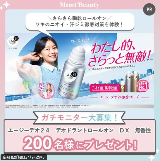 懸賞情報商品モニターエージーデオ24の無香シリーズがお試しできる商品モニターキャンペーン キャンペーン名:「エージーデオ24 デオドラントロールオン DX 無香性」のガチモニター企画に参加してくれる人募集!当選賞品:エージーデオ24 無香シリーズ商品モニター当選人数:200名様応募条件:会員登録して応募企業名:トレンダーズコメント:※公開のXまたはInstagramアカウントをお持ちの方 など条件あり この懸賞に応募する2026年03月15日(残り2日) 見逃せない懸賞松阪牛すき焼き / 雪温精法 新潟米食べ比べセット / 松阪牛特選ロースステーキ 他20名様 / 20名様 / 30名様 他Yogibo Max / Dyson 空気清浄ファンヒーター / おうち呑み名人 2WAYグリル&国産黒毛和牛 他100名様 / 100名様 / 1,000名様 他母子手帳ケース / しかけ絵本 / Amazonギフト券 5,000円分 他応募者全員 / 応募者全員 / 毎月10名様 他最大5万ポイント1,240名様葬送のフリーレングッズ、えらべるPay など賞品によって異なりますAmazonギフトカード 1万円分50名様 応募可能な懸賞関連する当選報告 シナールエクシアのスキンケアシリーズがサンプルでお試しできるキャンペーン!締切日不明全プレ!ディズニーシーチケットがかならずもらえるJCBのお得なキャンペーン2026年06月15日(全2回開催)ミステリー小説や書籍が当たるプレゼントキャンペーン残り18日山形県の特産品が当たる豪華プレゼントキャンペーン!定期開催2万円分のギフトカードや電動ヘッドマッサージャーが当たるクローズドキャンペーン毎月末日(応募数が200通を下回った場合はキャンペーン終了)全プレ!えらべるPay200ポイント分が必ずもらえるアサヒ飲料のアンケートキャンペーン残り10日 ポチカム「SK-II自信の美容液『SK-IIステムパワー』サンプルプレゼント」に当選!クスリのアオキ×ダリヤのクローズド懸賞で「国産和牛カタログギフト」が当選しました!ソフトバンクのキャンペーンで「リッチモンドホテル宿泊優待券10,000円分」が当選しました!ポチカム「★新発売★300名様に『ルミーチェ ハリつやローション』を現品プレゼント」ウテナのTwitter懸賞で「ゆず詰め合わせ」が当選しました♪大塚製薬「ポカリスエット ゼリー6個」が当選しました! 関連情報: オープン懸賞ネット懸賞Instagram懸賞SNS懸賞商品モニター美容・健康・コスメ懸賞情報 限定条件あり懸賞香水・消臭・芳香会員登録 HOME懸賞情報応募方法ネット懸賞エージーデオ24の無香シリーズがお試しできる商品モニターキャンペーン 2026年03月12日 更新:ものりんず@懸賞主婦【厳選】毎日応募 【全て】毎日応募