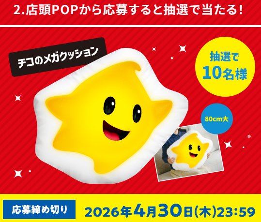 懸賞情報チコのメガクッションが10名様に当たるサントリーのキャンペーン 懸賞名:『ザ・スーパーマリオギャラクシー・ムービー』 クラフトボスコラボキャンペーン当選賞品:チコのメガクッション当選人数:10名様応募条件:アンケートに答えて応募企業名:サントリー この懸賞に応募する2026年04月30日(残り41日) 見逃せない懸賞グーン製品 無料サンプル毎月6,000名様QUOカードPay 最大1万円分合計10,000名様オリジナル名入れ絵本ダウンロードデータ対象者全員QUOカードPay 最大2,500円分10,000名様あなただけのグリーンラベル オリジナル缶5,000名様パンパース オムツ毎月1名様 応募可能な懸賞関連する当選報告 こどもの年齢にあった体験教材が毎月届く!定番のこどもちゃれんじ☆常時募集中QUOカードPay500円分がその場で当たるレシピ投稿キャンペーン残り8日甲羅本店で受け取る春の甲羅オードブル引換クーポンが当たるXキャンペーン残り9日ビックカメラギフトカードが当たる毎日応募Xキャンペーン残り2日毎月開催!豪華賞品が当たるグローバルWiFiの豪華LINEキャンペーン毎月開催アスタリフトBBクリーム無料サンプルセットがお得に試せる!締切日不明 和光堂「わこちゃんカフェ」会員限定ミルクモニターに当選しました♪ひかりTVのキャンペーンで「スイーツカタログギフト」が当選しました!エフピコのキャンペーンで「アイリスオーヤマ ダブル真空保温調理鍋」が当選しました!P&Gのハガキ懸賞で「ダスキン おそうじギフトカード 10,000円分」が当選しました!ユニフルーティージャパンのハガキ懸賞で「チキータオリジナルクーラーバッグ」が当選しました☆AEON SQUARE「ヘルシア モルトスタイル」が当選しました! 関連情報: オープン懸賞ネット懸賞懸賞情報生活用品・雑貨・家具 店内・現地クッションインテリア・家具サントリー HOME懸賞情報応募方法ネット懸賞チコのメガクッションが10名様に当たるサントリーのキャンペーン 2026年03月16日 更新:ものりんず@懸賞主婦【厳選】毎日応募 【全て】毎日応募