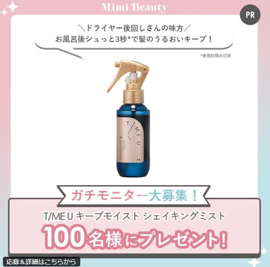 懸賞情報商品モニターT/ME Uのキープモイスト シェイキングミストがお試しできるガチモニター懸賞 キャンペーン名:「T/ME U キープモイスト シェイキングミスト」のガチモニター企画に参加してくれる人募集!当選賞品:T/ME U キープモイスト シェイキングミスト商品モニター当選人数:100名様応募条件:会員登録して応募企業名:トレンダーズコメント:※公開のXアカウントをお持ちの方 など条件あり この懸賞に応募する2026年03月22日(残り3日) 見逃せない懸賞えらべるPay 100ポイント32,800名様JTBトラベルギフト 10,000円分 / ワイヤレススピーカー / QUOカードPay 500円分500名様 / 1,000名様 / 3,500名様マタニティ・ベビー用品・コスメなどのサンプルセット賞品によって異なるワンピーススクラッチ オリジナルグッズ1,000名様Straine ヘアケア サンプル9,999名様デジタルギフトカード 最大1万円分936名様 応募可能な懸賞関連する当選報告 ディズニーランド・1デーパスポート+パレード優先鑑賞席チケットも当たる豪華懸賞終了日未定【ヤマナカ×メーカー各社】総額300万円分のヤマナカ電子マネーが当たるキャンペーン残り1日落第忍者乱太郎のオリジナルグッズが当たるハガキキャンペーン2026年03月31日(全2回抽選)パンどろぼうのオリジナルサンドイッチケースが当たるレシート懸賞残り1日豪華グルメが当たるトラストナビのプレゼントキャンペーン定期開催毎月開催!3,000円分のAmazonギフトカードが当たるユーキャンレポキャンペーン2026年05月31日(毎月抽選) ベル ジャポンのキャンペーンで「チーズ詰め合わせ」が当選しました☆KIRIN「一番搾り いろいろ色めくペアグラスセット」が当選しました♪イトーヨーカ堂・AGFのハガキ懸賞で「プチ・ラムカン・ダムール・セット」が当選しました♪集英社「MAQUIA ONLINE シャネル ヴィタルミエール スペシャルサンプルセット」オークワ×P&Gのハガキ懸賞で「P&Gスッキリ清潔セット」が当選しました!アサヒのTwitter懸賞で「届く強さの乳酸菌W 30本」が当選しました! 関連情報: オープン懸賞ネット懸賞商品モニター美容・健康・コスメ懸賞情報 限定条件あり懸賞ヘアケア・ヘアカラー会員登録 HOME懸賞情報応募方法ネット懸賞T/ME Uのキープモイスト シェイキングミストがお試しできるガチモニター懸賞 2026年03月19日 更新:ものりんず@懸賞主婦【厳選】毎日応募 【全て】毎日応募