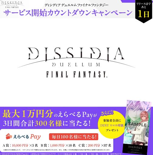 懸賞情報その場で当たる 300名様に最大10,000円分のえらべるPayが当たるXキャンペーン 懸賞名:カウントダウンキャンペーン当選賞品:えらべるPay 最大10,000円分当選人数:300名様応募条件:X(Twitter)アカウントで毎日その場で当たる企業名:ディシディア デュエルムFF この懸賞に応募する2026年03月25日(残り1日) 見逃せない懸賞 Coke ONドリンクチケット / ワイヤレスイヤホン / コンパクトペアチェア10万名様 / 1,000名様 / 100名様美容液ファンデ&UV下地サンプル10,000名様タカラcanチューハイ 1ケース毎月5名様QUOカードPay 最大1,000円円分3,900名様プレミアムポイント 最大10,000ポイント毎月80,101名様気になっていたあの商品をお得に試せるサイト「サンプル百貨店」 応募可能な懸賞 関連する当選報告 プリキュアグッズがもらえる、ファッションコンテストキャンペーン残り251日【ウエルシアグループ】最大1万円分の専用QUOカードPayが当たるクローズドキャンペーン残り47日ケロコロちゃんグッズが当たるBINGO懸賞♪定期開催エアウィーヴのキャリークッションが当たるスジャータのハガキ懸賞残り37日全プレ!ディズニーチケットが必ずもらえるディズニー★JCBカード新規入会&利用キャンペーン残り7日アンパンマンのムビチケやおもちゃが当たるフードリエのクローズド懸賞残り78日 APAISER「ベビーウェア」が当選しました☆アオキスーパー×ニッスイ「買い物券 1,000円分」が当選しました♪meiji「北海道十勝スマートチーズ 2ケース+オリジナル保冷バッグ」が当選しました☆アサヒのLINE懸賞で「贅沢搾りマンゴー」が当選しました♪MONIPLA「簡単クイズに答えて【ふとんクリーナーレイコップRS】が当たる♪快適健康生活を始めようキャンペーン」花王「カチコチ肩こり、疲れにバブ! 1週間体感キャンペーン」 関連情報: X懸賞(Twitter懸賞)オープン懸賞毎日応募その場で当たるネット懸賞豪華・高額懸賞現金・金券・ギフト券SNS懸賞懸賞情報 高額賞品・高級品電子マネー・ポイント HOME懸賞情報応募方法SNS懸賞X懸賞(Twitter懸賞)300名様に最大10,000円分のえらべるPayが当たるXキャンペーン 2026年03月23日 更新:ものりんず@懸賞主婦 【厳選】毎日応募 【全て】毎日応募