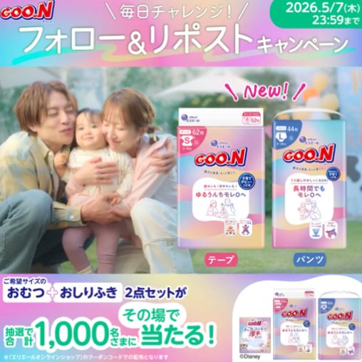 懸賞情報その場で当たるおむつ1パック+おしりふき1パックが当たる大量当選Xキャンペーン 懸賞名:「グーン モレ0へ」シリーズ発売記念キャンペーン当選賞品:おむつ1パック+おしりふき1パック当選人数:1,000名様応募条件:X(Twitter)アカウントで毎日その場で当たる企業名:エリエール この懸賞に応募する2026年05月07日(残り29日) 見逃せない懸賞ボディメンテオールスターズ ファンミーティング参加チケット 他500組1,000名様 他デジタルギフトカード / えらべるPay 最大1,000円分300名様 / 9,700名様デジタルギフトカード 最大1万円分936名様Panasonic 電気圧力鍋 / アラジン グラファイトトースター 他50名様 / 50名様 他電子マネー 最大10,000円分2,330名様コズレオリジナルデザイン「出生届」メルマガ登録して必ずもらえる 応募可能な懸賞関連する当選報告 ムッシュ熊雄ヨギボーやキャンバスミニトートが当たるキャンペーン2026年06月30日(全2回開催)【ヤマザワ×日清】日清のどん兵衛ナイター招待券も当たるクローズドキャンペーン残り29日金芽米1年分が50名様に当たる豪華LINEクイズキャンペーン残り48日BALMUDA The Potやスイーツが当たるUCCのクローズドキャンペーン残り22日毎月開催♪今月のオススメ商品セットが当たるキャンペーン!毎月開催いばらきのおいしいものが当たるJAグループ茨城のクローズドキャンペーン残り37日 CHANEL「N゜5 ロー オードゥ トワレット サンプル」が当選しました♪プレモノ「Suntory『南アルプスの天然水&ヨーグリーナ』のお詫びの品」ノートンのTwitter懸賞で「等身大ドラえもんバスタオル」が当選しました!TULLY’S COFFEE「タリーズカード1,000円分」が当選しました☆第2広報室「MAYBELLINE NEW YORK スーパー ミネラル コンシーラー ロングキープ」クスリのアオキ×ユニリーバのキャンペーンで「北陸カタログギフト」が当選しました! 関連情報: X懸賞(Twitter懸賞)オープン懸賞育児・子育て懸賞毎日応募ネット懸賞その場で当たる大量当選SNS懸賞ベビー・キッズ・おもちゃ懸賞情報 赤ちゃん・育児用品おむつ育児・子育てエリエール HOME懸賞情報応募方法SNS懸賞X懸賞(Twitter懸賞)おむつ1パック+おしりふき1パックが当たる大量当選Xキャンペーン 2026年04月08日 更新:ものりんず@懸賞主婦【厳選】毎日応募 【全て】毎日応募
