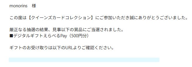 何度が参加したことがありますが、当選するのは今回が初!コツコツ応募が実ると嬉しいですよね(´ー`)