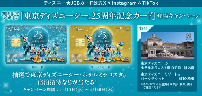 懸賞情報東京ディズニーシー・ホテルミラコスタ宿泊招待やパークチケットが当たる豪華SNS懸賞 懸賞名:公式SNS 期間限定デザイン「東京ディズニーシー25周年記念カード」登場キャンペーン当選賞品&当選人数:東京ディズニーシー・ホテルミラコスタ宿泊招待(計2組様)東京ディズニーリゾート・パークチケット(計10名様)応募条件:X・Instagram・TikTokアカウントで応募企業名:ディズニー★JCBカード この懸賞に応募する2026年04月30日(残り15日) 見逃せない懸賞セブンプレミアム カフェラテ無料引換クーポン1,000名様映画ドラえもん限定グッズ各回500名様コズレオリジナルデザイン「出生届」メルマガ登録して必ずもらえるレッドブル・レーシング 限定デザイングッズ2,500名様オリエンタルカレーオリジナルグッズ毎月500名様オリジナルフレークシール~プレママver~応募者全員 応募可能な懸賞関連する当選報告 全プレ☆図書カードが必ずもらえるポイントキャンペーン!常時募集中「風薫る」人気の「花好み」シリーズの創作腕輪念珠が当たるプレゼントキャンペーン残り11日全プレ☆ベビー用品やぬいぐるみがもらえるママ・プレママさん向けキャンペーン☆締切日不明透けるちゅるん肌を目指せるボディクリームがお試しできるモニター懸賞残り5日【島根県】JAしまねの特産品などが当たる豪華プレゼントキャンペーン残り7日かどや製油商品やオリジナルグッズなどが当たるポイントキャンペーン残り15日 アピタ・ピアゴ・おやつカンパニーのハガキ懸賞で「ベビースタージグソーパズル」が当選しました♪KADOKAWAのキャンペーンで「人気の児童書セット」が当選しました!DHC「海洋深層水 無料お試し6本セット」の懸賞に当選しました!バロー×雪印メグミルクのハガキ懸賞で「コードレス電動ブラシ」が当選しました!日本気象協会のX懸賞で「暑さ対策ソナエルセット」が当選しました!SAPPORO「麦とホップ THE GOLD MISSIONキャンペーン」 関連情報: ディズニー懸賞X懸賞(Twitter懸賞)旅行・宿泊ネット懸賞Instagram懸賞豪華・高額懸賞チケット・招待券SNS懸賞遊園地・テーマパーク・イベント懸賞情報 ホテル・旅館TikTokテーマパーク・レジャースポット東京関東(茨城・栃木・群馬・埼玉・千葉・東京・神奈川)高額賞品・高級品特別な体験|夢の実現招待券・入場券・チケットDisney|ディズニーJCB HOME懸賞情報ジャンル遊園地・テーマパーク・イベントディズニー懸賞東京ディズニーシー・ホテルミラコスタ宿泊招待やパークチケットが当たる豪華SNS懸賞 2026年04月15日 更新:ものりんず@懸賞主婦【厳選】毎日応募 【全て】毎日応募